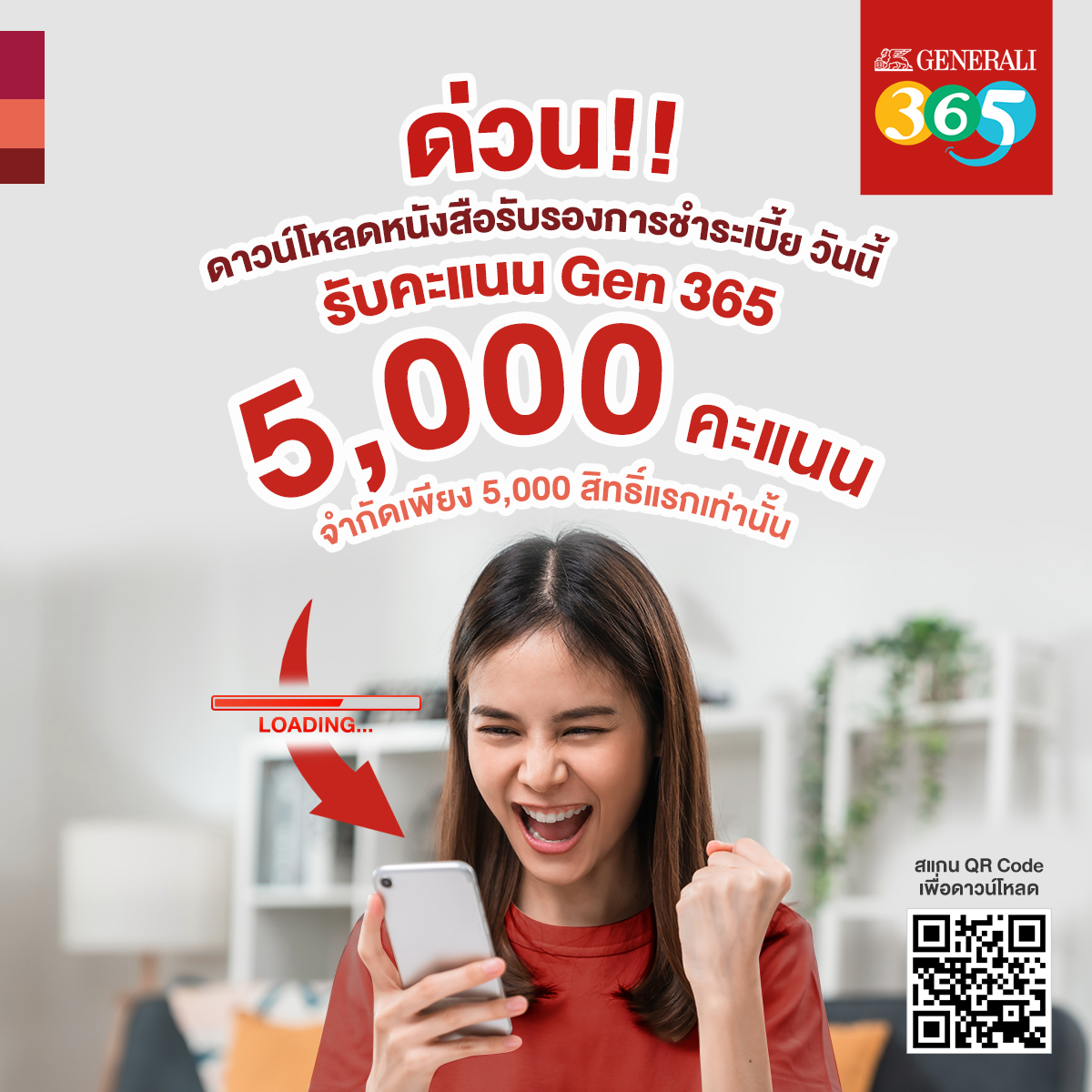 ลูกค้าเจนเนอราลี่ที่ถือกรมธรรม์ประกันรายบุคคล สามารถดาวน์โหลดหนังสือรับรองการชำระเบี้ยประกันภัย ปีภาษี 2564 พร้อมรับคะแนนสะสมได้ตั้งแต่วันนี้ – 31 มี.ค. 2565 หรือจนกว่าจะครบจำนวนสิทธิ์ โดยสามารถดาวน์โหลด Application : Generali 365 ได้ที่ ใช้งานฟรีทั้งในระบบปฏิบัติการ Android และ iOS และเพิ่มเพื่อนใน LINE Official : Generali Thailand ได้ที่ เพื่อไม่พลาดกับสิทธิพิเศษและบริการดี ๆ จากเจนเนอราลี่