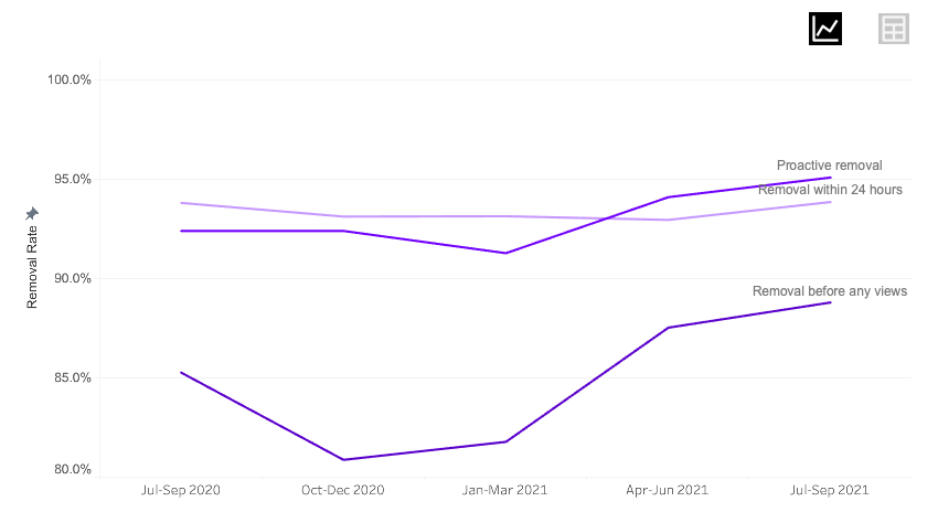 - ในจำนวนนั้น 95.1% ถูกลบออกก่อนมีการรายงาน และ 88.8% ถูกลบออกก่อนที่จะมีการดู