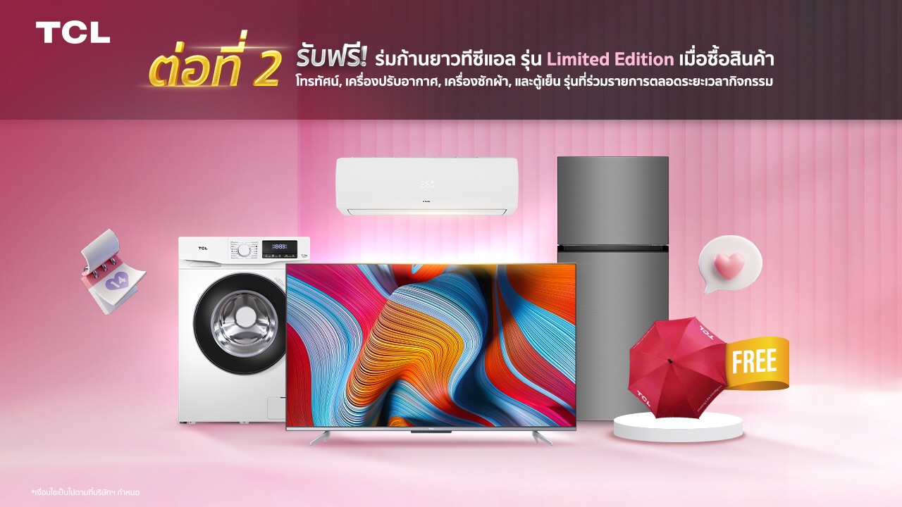 TCL ประกาศรายชื่อผู้โชคดี แคมเปญ “เที่ยวไทยเที่ยวฟรีกับทีซีแอล” รับที่พักสุดพิเศษ 3 วัน 2 คืน ช้อปสินค้า TCL ลุ้นต่อเนื่องถึง 17 มีนาคม นี้