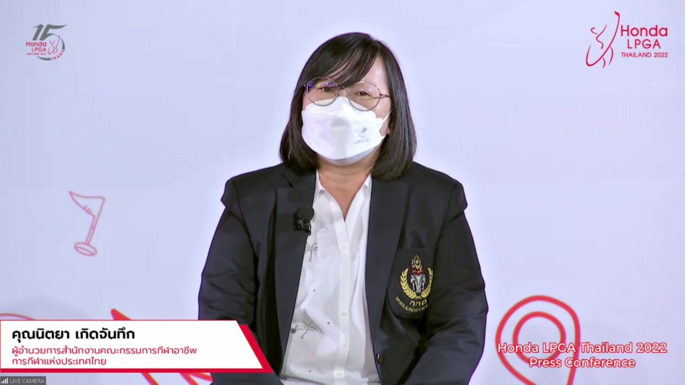 นางนิตยา เกิดจันทึก ผู้อำนวยการสำนักงานคณะกรรมการกีฬาอาชีพ การกีฬาแห่งประเทศไทย กล่าวว่า “การกีฬาแห่งประเทศไทย ภาคภูมิใจที่ได้มีส่วนร่วมในความสำเร็จปีที่ผ่านมาของทัวร์นาเมนต์ ฮอนด้า แอลพีจีเอ ไทยแลนด์ และรู้สึกตื่นเต้นอย่างมากกับการแข่งขันปีนี้ เพราะทัวร์นาเมนต์นี้มีส่วนสำคัญในการพัฒนาวงการกอล์ฟของเมืองไทย รวมถึงการสร้างมาตรฐานความเป็นเลิศของการจัดแข่งขันกีฬาบนมาตรฐานระดับสากล เราจึงรู้สึกยินดีที่ได้ร่วมมือกับฮอนด้าและไอเอ็มจีอีกครั้งในการจัดกิจรรมต่างๆ เพื่อมอบโอกาสให้แก่เยาวชนและผู้ที่สนใจซึ่งต้องการมุ่งหน้าไปบนเส้นทางสายกอล์ฟ อาทิ กิจกรรม Junior Golf Clinic ในเดือนกุมภาพันธ์ และ National Qualifiers ที่ให้สิทธิ์ผู้ชนะ 1 คน ร่วมแข่งขันในรายการฮอนด้า แอลพีจีเอ ไทยแลนด์ 2022 เราหวังว่าโอกาสเหล่านี้จะช่วยสนับสนุนนักกีฬาที่มีศักยภาพให้มุ่งหน้าไปบนเส้นทางสายกีฬาต่อไป”