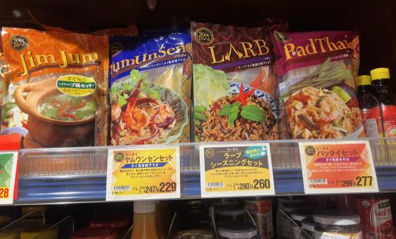 เครื่องปรุงทำต้มยำ ชุดทำอาหารไทยที่เป็นที่นิยมในญี่ปุ่น เช่น ผัดไทย ต้มยำ ยำวุ้นเส้น เป็นต้น