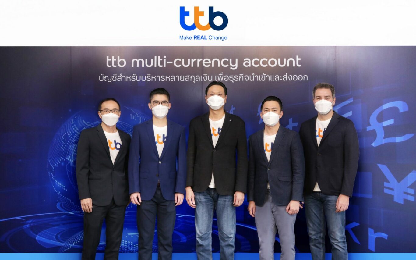 กรุงเทพฯ 24 กุมภาพันธ์ 2565 – ทีเอ็มบีธนชาต หรือ ทีทีบี (ttb) โดย นายเสนธิป ศรีไพพรรณ (ที่ 3 จากซ้าย) ประธานเจ้าหน้าที่บริหารลูกค้าธุรกิจ ร่วมเปิดตัว “ttb multi-currency account” บัญชีสำหรับบริหารหลายสกุลเงินที่ดีที่สุด ตอบโจทย์ลูกค้าธุรกิจกลุ่มนำเข้าและส่งออก ที่รองรับได้มากถึง 11 สกุลเงินหลักในบัญชีเดียว พร้อมยกระดับประสบการณ์การใช้งานดิจิทัล ครบทุกขั้นตอนอย่างเต็มรูปแบบ ผ่านอินเทอร์เน็ตแบงก์กิ้ง ใช้งานง่าย ครบ จบในระบบเดียว และยังสามารถใช้ระบบเดียวกันทำธุรกรรม ซื้อ ขาย รับ จ่าย ได้อย่างสะดวก ทั้งในและต่างประเทศ ลดขั้นตอนและความซับซ้อนในการบริหารจัดการ ช่วยให้ลูกค้าธุรกิจยกระดับประสิทธิภาพการทำงาน สามารถต่อยอดธุรกิจและพร้อมเติบโตได้อย่างยั่งยืน
