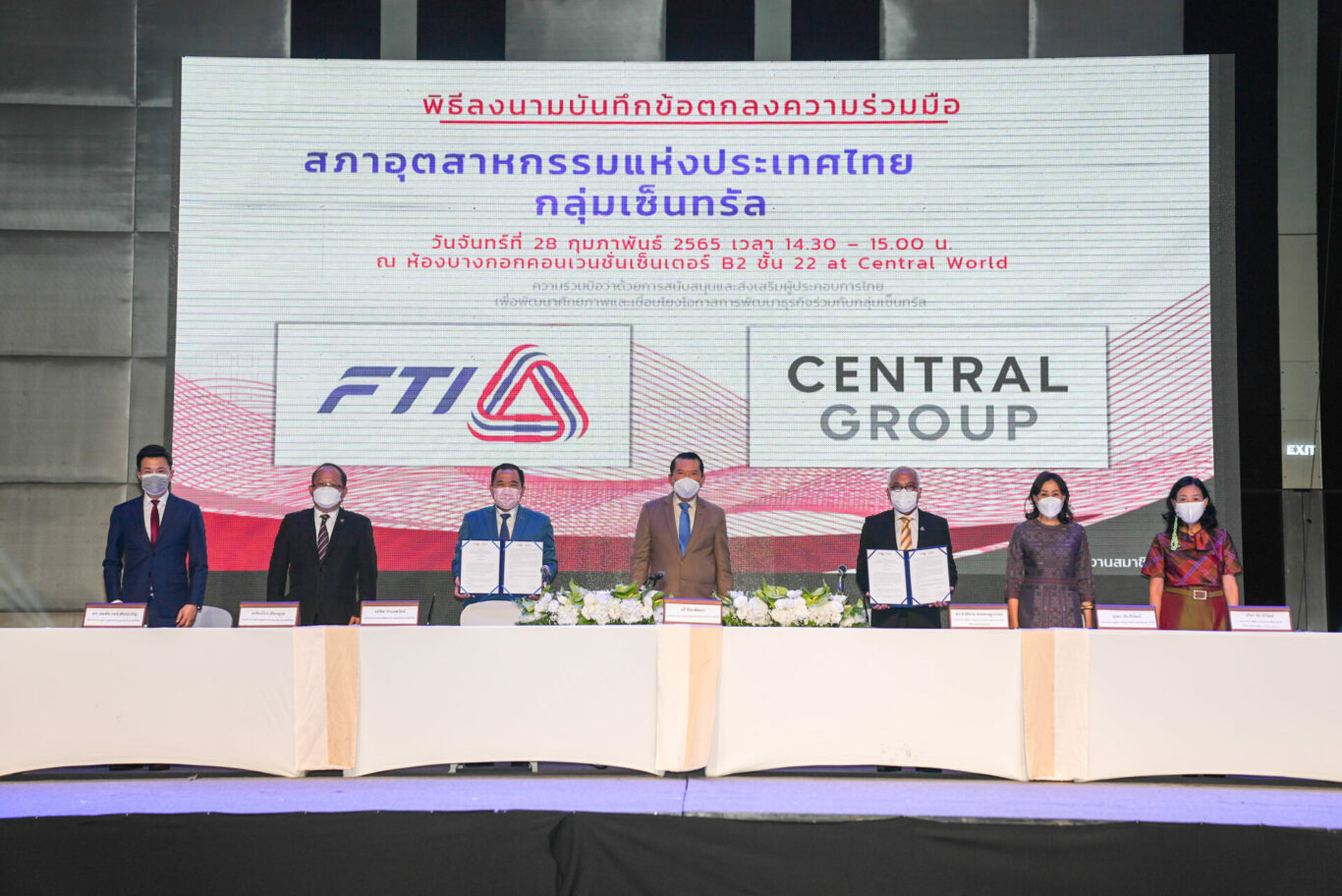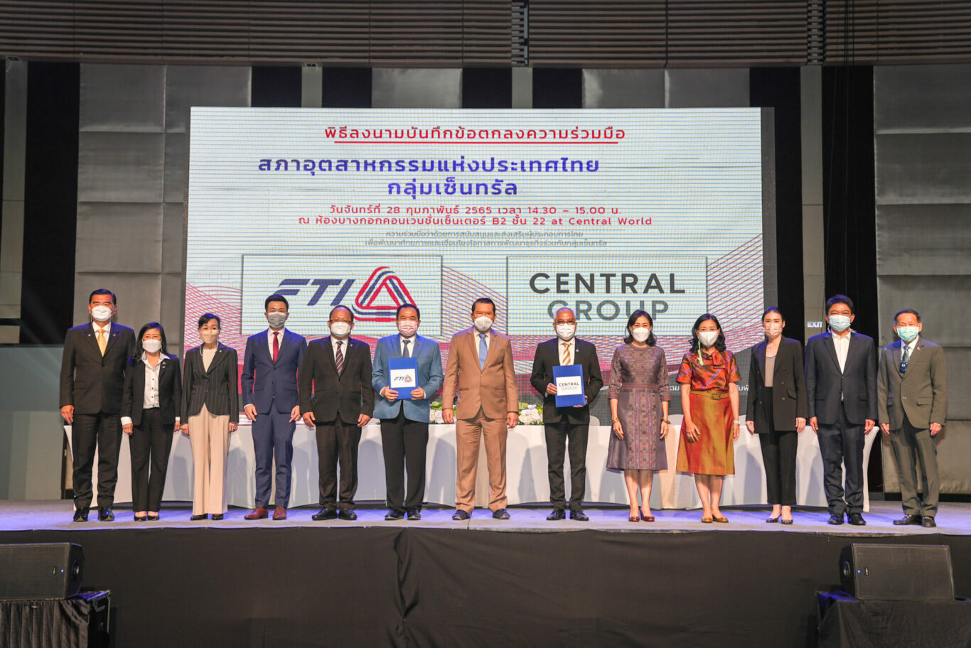 กรุงเทพฯ, ประเทศไทย – วันที่ 28 กุมภาพันธ์ 2565: กลุ่มเซ็นทรัล และ สภาอุตสาหกรรมแห่งประเทศไทย (ส.อ.ท.) ร่วมลงนามบันทึกข้อตกลงความร่วมมือเพื่อสนับสนุนและส่งเสริมการสร้างความร่วมมือในการพัฒนาศักยภาพผู้ประกอบการไทยและเชื่อมโยงโอกาสการพัฒนาธุรกิจ รวมทั้งสร้างช่องทางและโอกาสทางการค้า และบริการให้กับสมาชิกสภาอุตสาหกรรมแห่งประเทศไทย