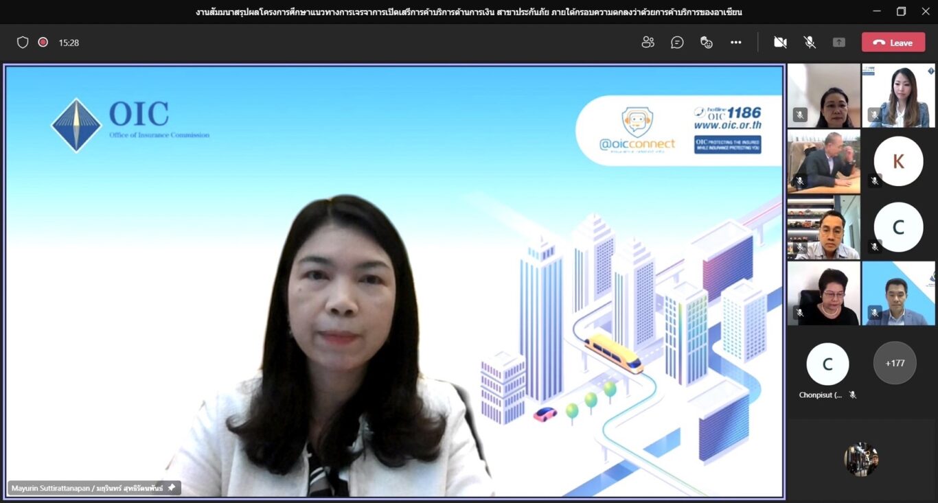 ดร. สุทธิพล ทวีชัยการ เลขาธิการคณะกรรมการกำกับและส่งเสริมการประกอบธุรกิจประกันภัย (เลขาธิการ คปภ.) เปิดเผยว่า เมื่อวันที่ 3 มีนาคม 2565 สำนักงานคณะกรรมการกำกับและส่งเสริมการประกอบธุรกิจประกันภัย (สำนักงาน คปภ.) ร่วมกับบริษัท อีวาย คอร์เปอเรท เซอร์วิสเซส จำกัด เปิดเวทีสัมมนา “สรุปผลการศึกษาแนวทางการเปิดเสรีการค้าบริการด้านการเงินสาขาประกันภัย ภายใต้กรอบความตกลงว่าด้วยการค้าบริการของอาเซียน” ในรูปแบบสัมมนา Online ผ่านระบบ Microsoft Teams โดยมีผู้บริหารและเจ้าหน้าที่จากสำนักงาน คปภ. ผู้แทนจากสมาคมประกันชีวิตไทย สมาคมประกันวินาศภัยไทย สมาคมนายหน้าประกันภัยไทย สมาคมตัวแทนประกันชีวิตและที่ปรึกษาการเงิน สมาคมนักคณิตศาสตร์ประกันภัยแห่งประเทศไทย สมาคมผู้ประเมินวินาศภัย สมาคมการค้าผู้สำรวจและประเมินวินาศภัยไทย บริษัทประกันชีวิตและบริษัทประกันวินาศภัย เข้าร่วมสัมมนา ซึ่งการจัดเวทีสัมมนาในครั้งนี้มีวัตถุประสงค์เพื่อเสริมสร้างความรู้ความเข้าใจต่อสภาพตลาดประกันภัยและแนวโน้มการเติบโตที่สำคัญของธุรกิจประกันภัยในอาเซียน และกระบวนการการดำเนินธุรกิจเพื่อเพิ่มขีดความสามารถในการแข่งขันและเตรียมความพร้อมในการเสริมสร้างธุรกิจประกันภัยให้สอดคล้องกับแนวโน้มการค้าการลงทุนภายในภูมิภาคที่สูงขึ้น รวมถึงผลักดันให้ภาคธุรกิจประกันภัยไทยให้มีบทบาทสำคัญในการขยายการลงทุนภายใต้กรอบความตกลงว่าด้วยการค้าบริการของอาเซียน