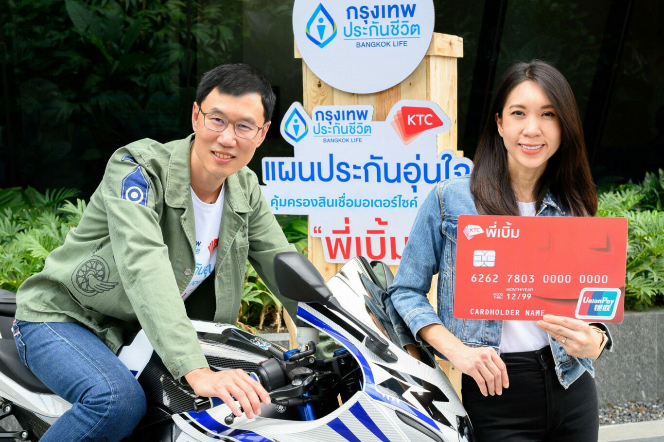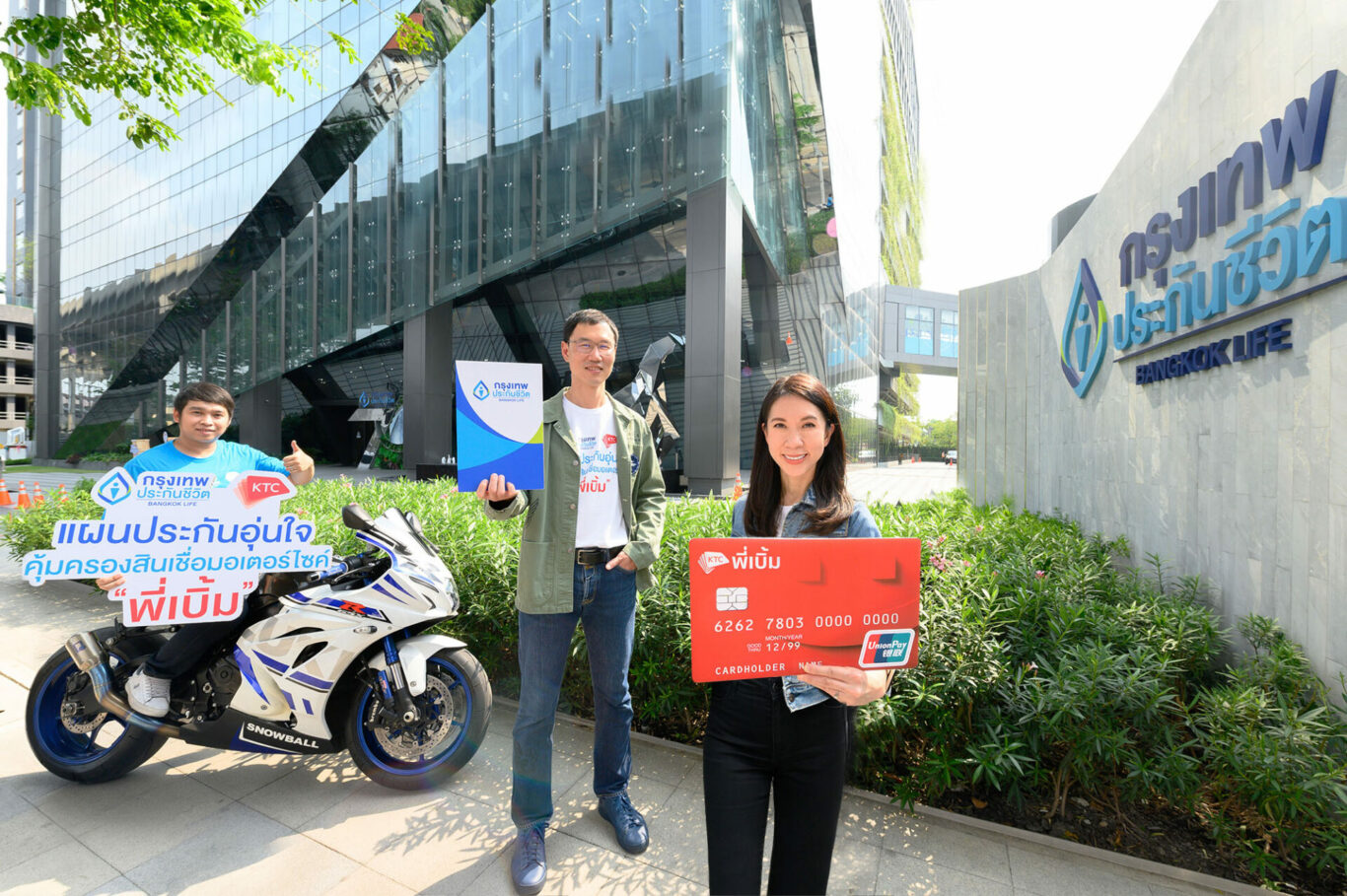 นางสาวพิชามน จิตรเป็นธรรม ผู้ช่วยประธานเจ้าหน้าที่บริหาร – ธุรกิจสินเชื่อบุคคล “เคทีซี” หรือ บริษัท บัตรกรุงไทย จำกัด (มหาชน) ร่วมกับ นายโชน โสภณพนิช กรรมการผู้จัดการใหญ่และประธานเจ้าหน้าที่บริหาร บริษัท กรุงเทพประกันชีวิต จำกัด (มหาชน) ผู้นำด้านความคุ้มครองประกันชีวิตเพื่อความมั่นคงทางการเงิน เพิ่มทางเลือกให้กับสมาชิกที่ได้รับการอนุมัติ “สินเชื่อทะเบียนรถจักรยานยนต์ เคทีซี พี่เบิ้ม” สามารถเลือกซื้อ “ประกันอุ่นใจ คุ้มครองสินเชื่อมอเตอร์ไซค์ พี่เบิ้ม” (กรมธรรม์ประกันชีวิต) เพื่อแบ่งเบาภาระให้กับสมาชิกและครอบครัว ในกรณีที่เกิดเหตุการณ์ไม่คาดคิด โดยสมาชิกจะได้รับความคุ้มครองค่ารักษาพยาบาลจากอุบัติเหตุสูงสุด 5,000 บาทต่อครั้ง (ตามแผนที่กำหนด) กรณีเสียชีวิตหรือทุพพลภาพ ทางบมจ.กรุงเทพประกันชีวิต จะดำเนินการชำระเงินเพื่อปิดวงเงินสินเชื่อที่คงค้างอยู่กับเคทีซีทั้งหมดให้กับสมาชิก
