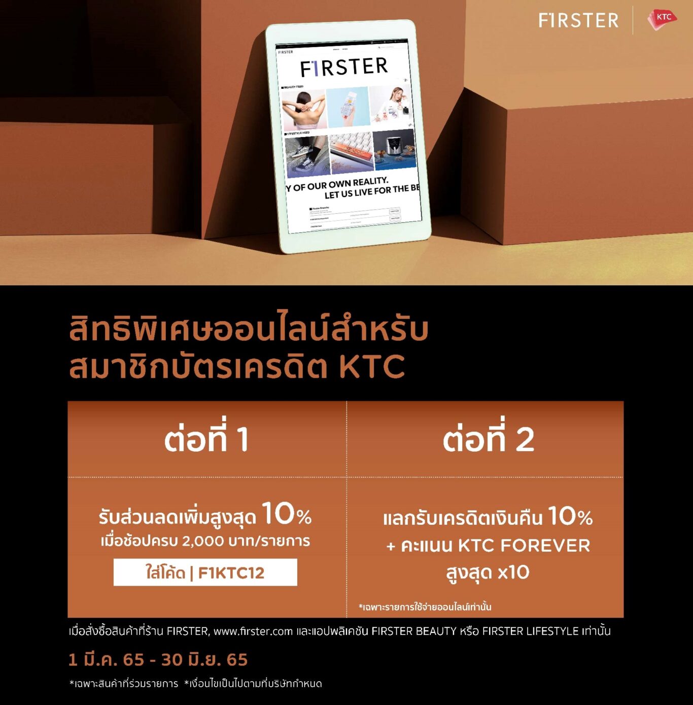 “เราเชื่อว่าความร่วมมือระหว่างเคทีซีกับเฟิร์สเตอร์ จะช่วยให้ทั้งสองแบรนด์สามารถตอบโจทย์วิถีของนักช้อปในยุคใหม่นี้ได้อย่างตรงใจ นอกเหนือจากการเลือกซื้อสินค้าคุณภาพที่มีสไตล์ได้อย่างอิสระแล้ว ยังได้รับความสะดวกสบาย และความคุ้มค่าจากสิทธิพิเศษที่ทางเคทีซีจัดเตรียมไว้ให้อย่างแน่นอน “เฟิร์สเตอร์” ในเครือคิง เพาเวอร์ คลิก เป็นช็อปปิ้งคอนเซปต์ใหม่ล่าสุด ที่เกิดจากความเข้าใจและการนำเสนอสินค้าภายใต้แนวคิดแบบเจาะลึก ผสานกับการศึกษาข้อมูลเชิงลึกของผู้บริโภค เพื่อมอบประสบการณ์การช็อปปิ้งแบบไร้รอยต่อและความสะดวกสบาย ที่เข้าใจและเข้าถึงกลุ่มลูกค้าเป้าหมายอย่างลึกซึ้ง จริงจัง รายละเอียดเพิ่มเติมคลิก https://ktc.today/FIRSTER”