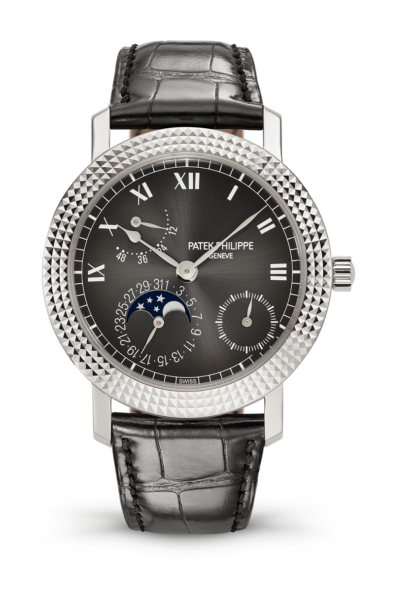 Ref. 5057G-010 Calatrava นี้ เป็นนาฬิกาข้อมือ รุ่น Limited Edition ที่ทำจากทองคำขาว และจะจัดผลิตขึ้นโดยเฉพาะเพื่อใช้ในการเฉลิมฉลอง 50 ปี โดยได้ผลิตขอบตัวเรือนเป็นแบบแกะสลักสามแถว สลักลวดลายแบบหัวตะปูด้วยเทคนิคกิโยเช่ ซึ่งเป็นหนึ่งในเอกลักษณ์ดั้งเดิมที่ Patek Phillip ได้ประดิษฐ์ไว้เพื่อ Cortina Watch ในปี 1997 เพื่อร่วมฉลอง 25 ปีแห่งคู่ค้าทางธุรกิจด้วยกัน ทั้งนี้ความพิเศษของรุ่นนี้ จะมีหน้าปัดเป็นสีเทาเข้ม แรเงาในตัวขอบเรือน และใช้ตัวเลขบอกเวลาแบบโรมันซึ่งเป็นทองขาว และเข็มนาฬิกาบอกเวลาถูกประดิษฐ์ในแบบรูปร่างผลแพร์อย่างสวยงาม
