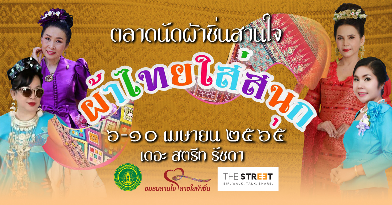ศูนย์การค้า เดอะ สตรีท รัชดา ร่วมกับ กรมส่งเสริมวัฒนธรรม และ ชมรมสานใจ สายใยผ้าซิ่น เชิญชวนคนไทยร่วมเป็นส่วนหนึ่งในการอนุรักษ์ผ้าไทย สวมใส่ชุดผ้าไทยเยี่ยมชม และอุดหนุนสินค้าผ้าทอไทยในราคาที่เหมาะสมที่ส่งตรงจากผู้ทอผ้าทั่วประเทศในงาน “ตลาดนัดสานใจ ครั้งที่ 7”