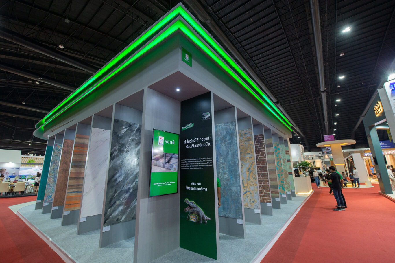 นายศุภพงษ์ กล่าวเสริมว่า “จระเข้มีการTransform ในหลายมิติ มิติแรก Transform ในการออกแบบก่อสร้างบูธ มิติต่อมา Transform การรับรู้ ก้าวออกจากกรอบความคิดเดิมที่จระเข้ ยืนหนึ่งในนวัตกรรมปูกระเบื้องมาสู่กลุ่มสินค้าสำหรับโครงสร้างขนาดใหญ่ ด้วยผลิตภัณฑ์หลากหลาย สามารถใช้ร่วมกันปกป้องทั้งบ้าน และขยายสู่การปกป้องงานโครงสร้างพื้นฐาน Infrastructure  อีกมิติที่สำคัญ และงานตกแต่งที่จับต้องได้ คือ SEE JORAKAY สีธรรมชาติ ที่มีความแตกต่างจากสีทั่วไปในตลาด”