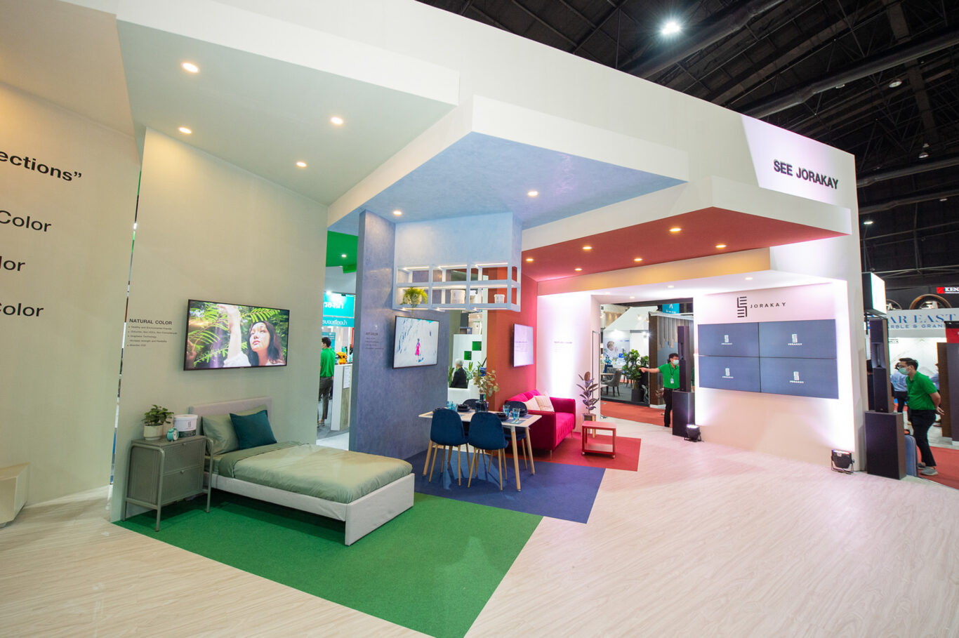ส่วนไฮไลท์อย่างสุดยอดนวัตกรรม SEE JORAKAY เป็นสีที่ทำจากธรรมชาติ 100% รายแรกและรายเดียวในประเทศไทย ที่ครั้งนี้ได้นำมาใช้ตกแต่งทั้งพื้นที่ ดีต่อทั้งช่างผู้ใช้งาน ผู้เยี่ยมชมงาน และดีกับโลก ยิ่งในช่วงวิกฤตโควิด-19 ผู้บริโภคหันมาสนใจผลิตภัณฑ์ที่ดีกับสุขภาพมากขึ้น รวมไปถึงสีทาอาคารอย่างกลุ่ม NATURAL COLOR ที่สามารถออกแบบตกแต่งได้หลากหลาย พร้อมทั้งคุณสมบัติโดดเด่นในการดูดซับก๊าซคาร์บอนไดออกไซด์ได้เท่ากับต้นไม้ใหญ่ ปราศจากสารประกอบอินทรีย์วัตถุระเหยง่าย (NON VOC) ไม่มีกลิ่นฉุน เนื้อสีมีความเป็นธรรมชาติ เพราะผลิตจากวัสดุจากธรรมชาติ Lime Stone ผสานกับเทคโนโลยี Graphene ที่ได้รับรางวัลโนเบล ช่วยในการทำให้สียืดหยุ่น สีจระเข้ จึงช่วยปกป้องผู้อยู่อาศัยและปลอดภัยต่อผู้ใช้งาน ผู้บริโภคจึงมั่นใจและเลือกใช้สำหรับบ้านพักอาศัย และโครงการต่างๆ