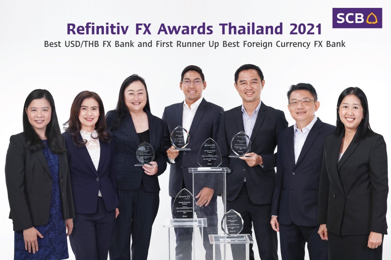 ธนาคารไทยพาณิชย์ ภูมิใจเข้ารับมอบ 6 รางวัลยอดเยี่ยมด้านบริการแลกเปลี่ยนเงินตราต่างประเทศจาก FX Awards ประจำปี 2564 จัดโดย Refinitiv บริษัทผู้ให้บริการแพลตฟอร์มซื้อขายเงินตราต่างประเทศในเครือตลาดหลักทรัพย์ลอนดอน (LSEG) ประกอบด้วย รางวัลผู้ให้บริการแลกเปลี่ยนดอลลาร์-บาทยอดเยี่ยม (Best USD/THB FX Bank) รางวัลรองชนะเลิศอันดับหนึ่งผู้ให้บริการแลกเปลี่ยนเงินตราต่างประเทศ (First Runner Up Best Foreign Currency FX Bank) รวมทั้งรางวัลชนะเลิศและรองชนะเลิศผู้มีส่วนร่วมในการพัฒนาตลาด (Best Contributor) สำหรับ Overnight Index Swap, Interest Rate Swap, Local CCY และ FX Matching รวมจำนวน 4 รางวัล สะท้อนถึงความเป็นผู้นำในตลาดการเงิน เป็นผู้ให้บริการแลกเปลี่ยนเงินตราที่ได้รับความไว้วางใจจากลูกค้าธุรกิจในประเทศไทยอย่างกว้างขวาง โดยเฉพาะอย่างยิ่งเป็นธนาคารผู้ให้บริการแลกเปลี่ยนเงินสกุลดอลลาร์-บาทมูลค่ารวมเป็นอันดับหนึ่งในประเทศไทย โดยมี นายแพททริก ปูเลีย ผู้ช่วยผู้จัดการใหญ่ ผู้บริหารสายงานตลาดการเงิน ธนาคารไทยพาณิชย์ เป็นผู้แทนรับมอบรางวัล เมื่อเร็วๆนี้