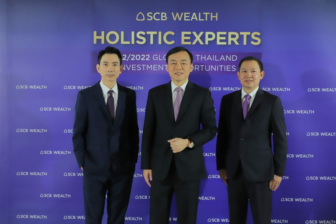 SCB WEALTH กลับมาอีกครั้งในรูปแบบ SCB WEALTH HOLISTIC EXPERTS หลังจากโควิด-19 เพื่อสร้างความแข็งแกร่งและความเชื่อมั่นให้กับนักลงทุน นำทีมโดย SCB WEALTH ADVISORY TEAM ที่พร้อมจะดูแลต่อยอดความมั่งคั่งให้กับลูกค้า Wealth ในประเทศไทย ด้าน SCB CIO เน้น 5 กลยุทธ์จัดพอร์ตชนะเงินเฟ้อสูงและดอกเบี้ยขาขึ้น ในช่วงตลาดผันผวน แนะทยอยสะสมตราสารหนี้คุณภาพดี กระจายความเสี่ยงสู่สินทรัพย์ Private asset, Structure note และหุ้นกลุ่ม ESG ส่วน SCBS ประเมินเศรษฐกิจไทยปีนี้เติบโต 3.4% รับอานิสงส์จากการเปิดประเทศ เป้าหมาย SET Index ปีนี้ อยู่ที่ 1,650 จุด เคลื่อนไหวในกรอบ 1,550 -1,750 คาดไตรมาส 3 ดัชนีตลาดหุ้นไทยต่ำสุด แนะลงทุนหุ้นที่มีกำไรแกร่ง ราคาไม่แพง ได้แก่ กลุ่มธนาคาร อาหารและเครื่องดื่ม