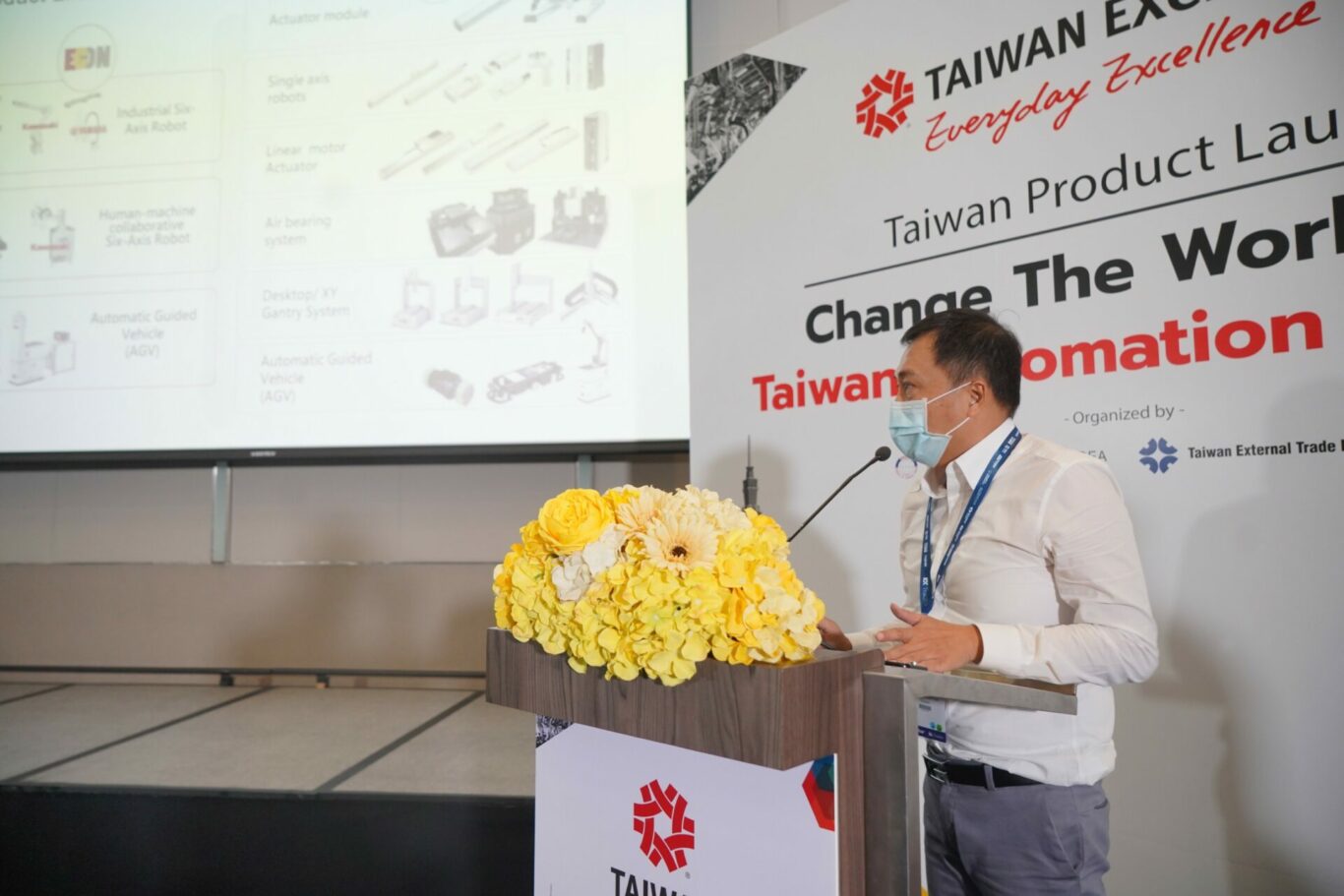 งานเปิดตัวผลิตภัณฑ์ Taiwan Excellence เริ่มต้นด้วยบริษัท SOLOMON ที่มาแนะนำการใช้งานระบบหยิบวางสินค้าอัตโนมัติในสายการผลิตและคลังสินค้าต่างๆ โดยระบบดังกล่าวได้บูรณาการระบบแมชชีนวิชั่น ปัญญาประดิษฐ์ และสแกนสามมิติเข้าด้วยกัน ต่อด้วยบริษัท Techman Robot ที่มาแนะนำโคบอทที่บริษัทพัฒนาออกมาให้ อัจฉริยะ ใช้งานง่ายและปลอดภัย พร้อมแนะนำเคสตัวอย่างที่ใช้โคบอทในการแปรรูปโลหะ การผลิตพลาสติกและยาง และสายการผลิตอัตโนมัติ ส่วนบริษัท TOYO ได้แนะนำการใช้งานส่วนประกอบความแม่นยำสูงในทางการแพทย์ การตรวจสอบแผ่นวงจรพิมพ์ และการประกอบสกู๊ตเตอร์ ทั้งนี้ยังอวดโฉมสายการประกอบยูเอสบีอัตโนมัติที่บริษัทพัฒนาขึ้นเอง ทางด้านบริษัท TBI MOTION ได้แนะนำคุณลักษณะและเคสตัวอย่างการใช้งานหัวขับไฟฟ้าแบบลิเนียและบอลสกรูที่บริษัทพัฒนา และการใช้งานในอุตสาหกรรม การแพทย์ การขนส่งและเครื่องจักรความแม่นยำสูง ก่อนจะปิดท้ายงานเปิดตัวผลิตภัณฑ์ด้วยบริษัท PLANET ที่มาแนะนำโซลูชั่นโครงสร้างพื้นฐานเครือข่ายอุตสาหกรรม พร้อมอธิบายว่าผลิตภัณฑ์ของบริษัทช่วยให้ผู้ผลิตแบบดั้งเดิมและผู้ประกอบการธุรกิจขนาดเล็กสร้างเครือข่ายอุตสาหกรรมได้อย่างไร