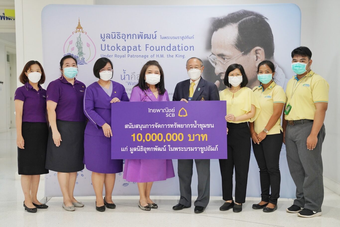 ดร.สุเมธ ตันติเวชกุล ประธานกรรมการมูลนิธิอุทกพัฒน์ ในพระบรมราชูปถัมภ์ รับมอบเงินจำนวน 10 ล้านบาท จากคุณอารยา ภู่พานิช รองผู้จัดการใหญ่ ผู้บริหารสายงานกิจกรรมเพื่อสังคม ธนาคารไทยพาณิชย์ เพื่อสนับสนุนการดำเนินโครงการบริหารจัดการทรัพยากรน้ำและพัฒนาแหล่งน้ำตามแนวพระราชดำริ ให้ชุมชนมีแหล่งกักเก็บน้ำสำหรับการอุปโภค บริโภค และการเกษตร แก้ไขปัญหาภัยแล้ง รวมถึงอุทกภัย ซึ่งธนาคารฯ ได้ให้การสนับสนุนมูลนิธิอุทกพัฒน์ฯ มาอย่างต่อเนื่องกว่า 15 ปีเพื่อให้โครงการมีความต่อเนื่องและเกิดความยั่งยืน ณ มูลนิธิชัยพัฒนา กรุงเทพมหานคร