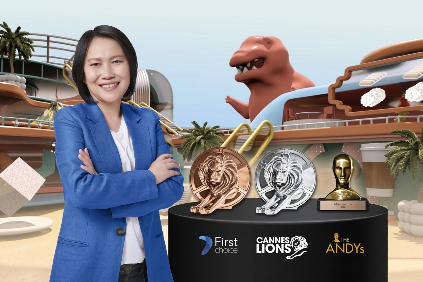 กรุงเทพฯ – 11 กรกฏาคม 2565 : นางสาวพัทธ์หทัย กุลจันทร์ กรรมการผู้จัดการใหญ่ บริษัท อยุธยา แคปปิตอล เซอร์วิสเซส จำกัด ผู้ให้บริการบัตรเครดิตและสินเชื่อส่วนบุคคลแบรนด์ กรุงศรีเฟิร์สช้อยส์ ร่วมแสดงความยินดีในโอกาสที่ผลงานโฆษณาของกรุงศรีเฟิร์สช้อยส์ชุด ‘METAVERRRRRRR’ ที่สร้างสรรค์โดยบริษัท เดอะ ลีโอเบอร์เนทท์ กรุ๊ป (ประเทศไทย) จำกัด คว้า 3 รางวัลใหญ่ จาก 2 เวทีประกวดรางวัลโฆษณาระดับโลก ได้แก่ รางวัล Silver Lion ในหมวด Consumer Service / Business to Business และรางวัล Bronze Lion ในหมวด Local Brand จาก Cannes Lions International Festival of Creativity 2022 และรางวัล Gold จาก 2022 International Andy Awards ตอกย้ำภาพลักษณ์แบรนด์กรุงศรีเฟิร์สช้อยส์ในฐานะแบรนด์ผู้ให้บริการทางการเงินชั้นนำ ซึ่งให้ความสำคัญกับการสื่อสารด้วยความคิดสร้างสรรค์ที่โดดเด่น โดนใจคนรุ่นใหม่อย่างต่อเนื่อง