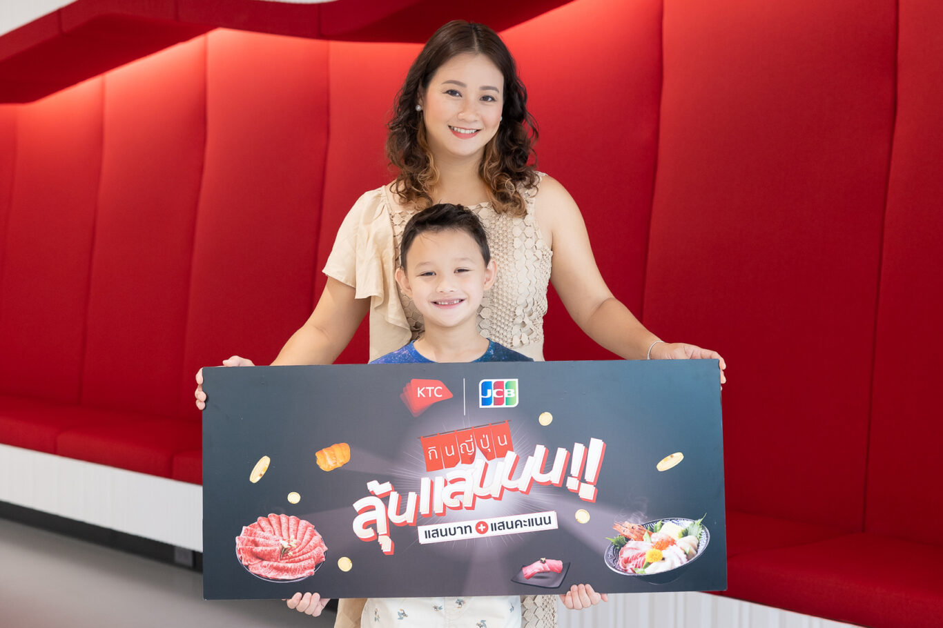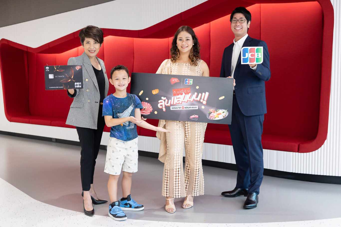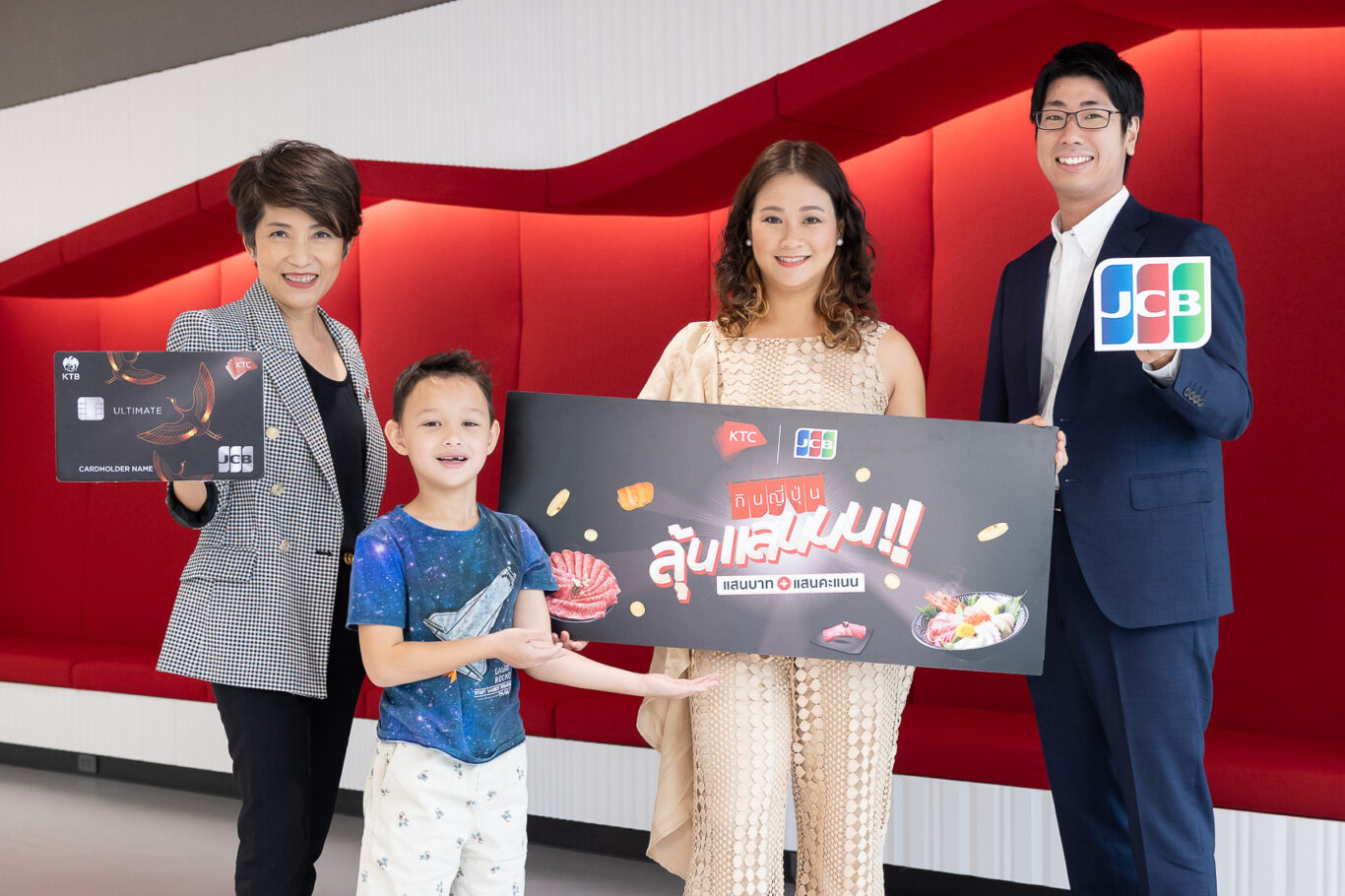นางประณยา นิถานานนนท์ ผู้ช่วยประธานเจ้าหน้าที่บริหาร – การตลาดบัตรเครดิต “เคทีซี” หรือ บริษัท บัตรกรุงไทย จำกัด (มหาชน) ร่วมกับ นายฮิโรกิ มัตสิโนะ Sales Division First Vice President บริษัท เจซีบี อินเตอร์เนชั่นแนล (ประเทศไทย) จำกัด มอบรางวัลให้กับ นางสาวรัตติพร นิมิตราภรณ์ สมาชิกบัตรเครดิตเคทีซี เจซีบี ผู้โชคดีที่ได้รับรางวัลที่ 1 บัตรกำนัล 100,000 บาท และคะแนน KTC FOREVER 100,000 คะแนน รวมมูลค่ารางวัล 110,000 บาท จากแคมเปญ “กินญี่ปุ่น ลุ้นแสน” ซึ่งสมาชิกใช้จ่ายผ่านบัตรเครดิตเคทีซี เจซีบีที่กว่า 140 ร้านอาหารญี่ปุ่นทั่วประเทศที่ร่วมรายการ ลุ้นรับรางวัลบัตรกำนัล และคะแนน KTC FOREVER รวมมูลค่า 550,000 บาท ระหว่างวันที่ 15 มกราคม 2565 – วันที่ 15 เมษายน 2565