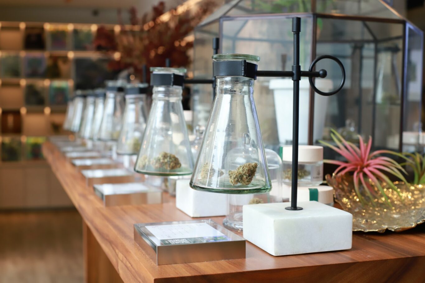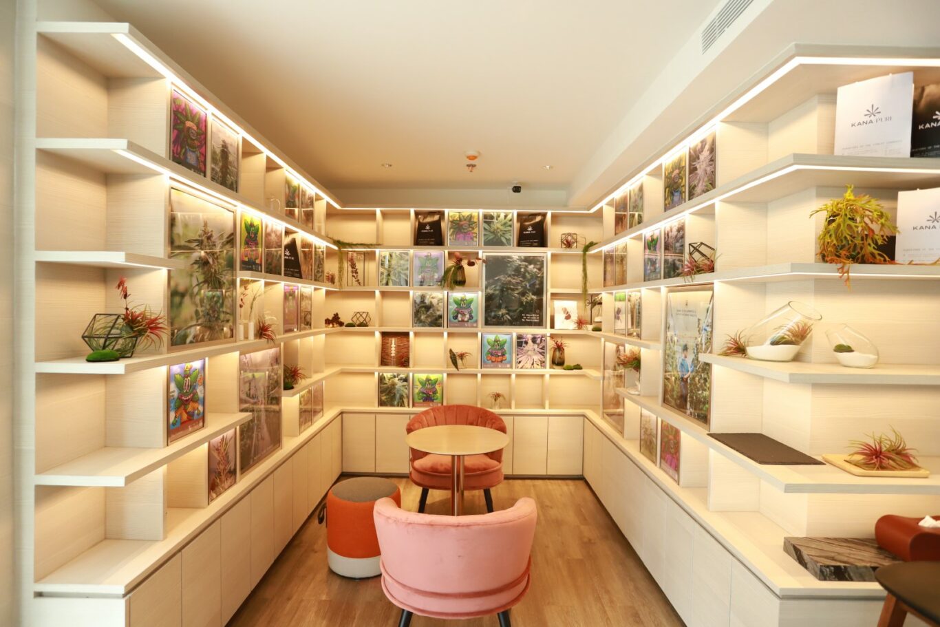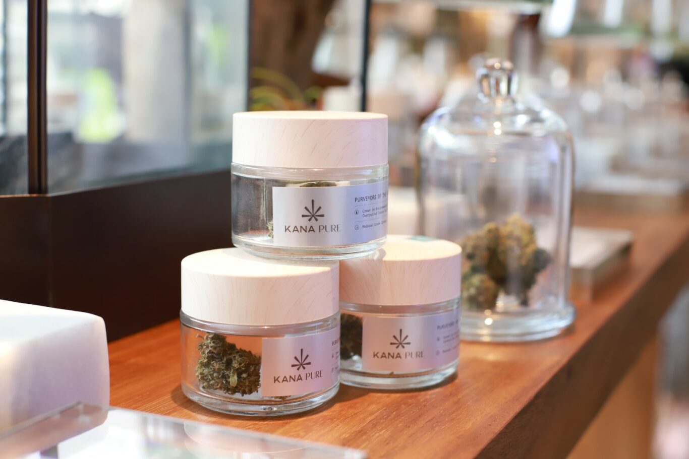 KANA Pure Dispensary เป็นร้านขายดอกกัญชาเกรดพรีเมียมที่เลือกใช้ในทางการแพทย์ ผ่านการคัดสรรกัญชาคุณภาพสูงจากแปลงปลูกของบริษัท โดยทางร้านตกแต่งด้วยโทนไม้สีขาว ครีม และทอง บ่งบอกถึงความพรีเมียมที่ทันสมัย ทั้งนี้ KANA ยังให้ความสำคัญกับคุณภาพของกัญชาด้วยมาตรฐานขั้นสูงสุด เริ่มต้นจากโรงปลูกกัญชาที่ทางบีสโปคร่วมกับมหาวิทยาลัยเทคโนโลยีราชมงคลล้านนา (น่าน) ได้รับอนุญาตอย่างถูกต้องจากสำนักงานคณะกรรมการอาหารและยา (อย.) ซึ่งเป็นระบบปิดแบบสมบูรณ์ที่ควบคุมสารอาหารเพื่อการเจริญเติบโต ควบคุมปริมาณก๊าซคาร์บอนไดออกไซด์ที่เป็นส่วนสำคัญในการสังเคราะห์แสง รวมถึงควบคุมปริมาณแสงให้เหมาะสมในแต่ละช่วงการเจริญเติบโตของพืชกัญชา นอกจากนี้ ยังควบคุมปริมาณและคุณภาพของสารอาหาร น้ำ ลม รวมไปถึงพิถีพิถันในทุก ๆ ขั้นตอนการปลูก การเก็บเกี่ยว การเก็บรักษา ในระดับ Medical Grade เพื่อให้มั่นใจว่าไม่มีสารปนเปื้อน เชื้อรา สารก่อมะเร็ง หรือแมลงต่าง ๆ จึงทำให้ได้กัญชา 15 สายพันธุ์ระดับโลกที่มีประสิทธิภาพสูง
