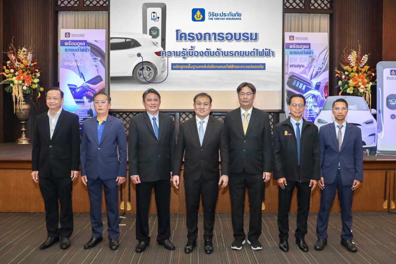 บริษัท วิริยะประกันภัย จำกัด (มหาชน) โดย นายภาคภูมิ วิริยะพันธุ์ ผู้ช่วยกรรมการผู้จัดการ พร้อมคณะผู้บริหารระดับสูง ร่วมจัดโครงการอบรมความรู้เบื้องต้นด้านรถยนต์ไฟฟ้าหลักสูตร “พื้นฐานเทคโนโลยียานยนต์ไฟฟ้าและความปลอดภัย” (Electric Vehicle Technology and Safety)