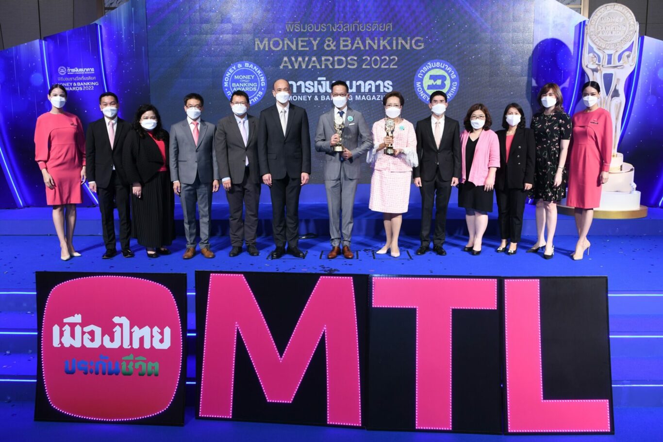 และ “รางวัลบูธสวยงามยอดเยี่ยม” ประเภทพื้นที่ 300-500 ตารางเมตร เป็นปีที่ 9 จากความโดดเด่นในด้านการออกแบบด้วยแนวคิด MTL’s Next to you สื่อถึงความล้ำสมัย พร้อมส่งมอบความสุขและรอยยิ้มแก่ลูกค้าในทุกกลุ่ม สร้างสรรค์โลกใหม่แบบ Metaverse โดยมี นายสันติ วิริยะรังสฤษฎ์ ประธานบรรณาธิการ วารสารการเงินธนาคาร ร่วมแสดงความยินดี ณ โรงแรมนิกโก้ กรุงเทพฯ