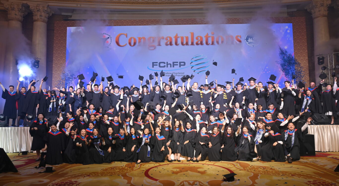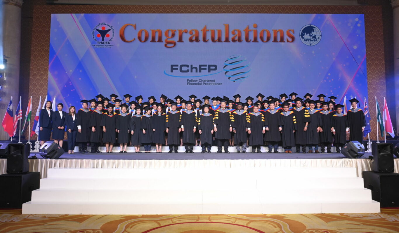 นอกจากนั้น สมาคมตัวแทนประกันชีวิตฯ ยังได้จัดพิธีมอบวุฒิบัตรให้แก่ผู้สำเร็จการศึกษาหลักสูตรที่ปรึกษาการเงิน FChFP ภายใต้ชื่องาน “FChFP Graduation 2022” ในเวลา 16.00 – 18.30 น. เพื่อเชิดชูเกียรติและแสดงความยินดีให้แก่ผู้ที่ผ่านการอบรมหลักสูตรที่ปรึกษาการเงิน FChFP Executive Program ซึ่งในปีนี้ได้รับเกียรติจาก Mr.Matthew Kang ประธาน APFinSA ร่วมกล่าวแสดงความยินดีแก่บัณฑิต พร้อมมอบวุฒิบัตรให้แก่บัณฑิตระดับ Distinction และ Mr. S.K. Samy ประธานฝ่ายหลักสูตรของ APFinSA (ICSB Chairman) ให้เกียรติมอบวุฒิบัตรให้แก่บัณฑิต ระดับ Credit และ Pass โดยมีคุณณัฐกิตติ์ เงาวิจิตรไพศาล ผู้อำนวยการหลักสูตร เป็นผู้นำกล่าวคำปฏิญาณแก่ผู้สำเร็จการศึกษา เพื่อตอกย้ำให้ที่ปรึกษาการเงินมืออาชีพ ธำรงไว้ซึ่งการทำงานด้วยจรรยาบรรณและการบริการอันเป็นเลิศ ก่อนเริ่มพิธีมอบวุฒิบัตร และได้รับเกียรติจากนายบรรยง วิทยวีรศักดิ์ ประธานผ่านพ้นของ APFinSA กล่าวปิดงาน
