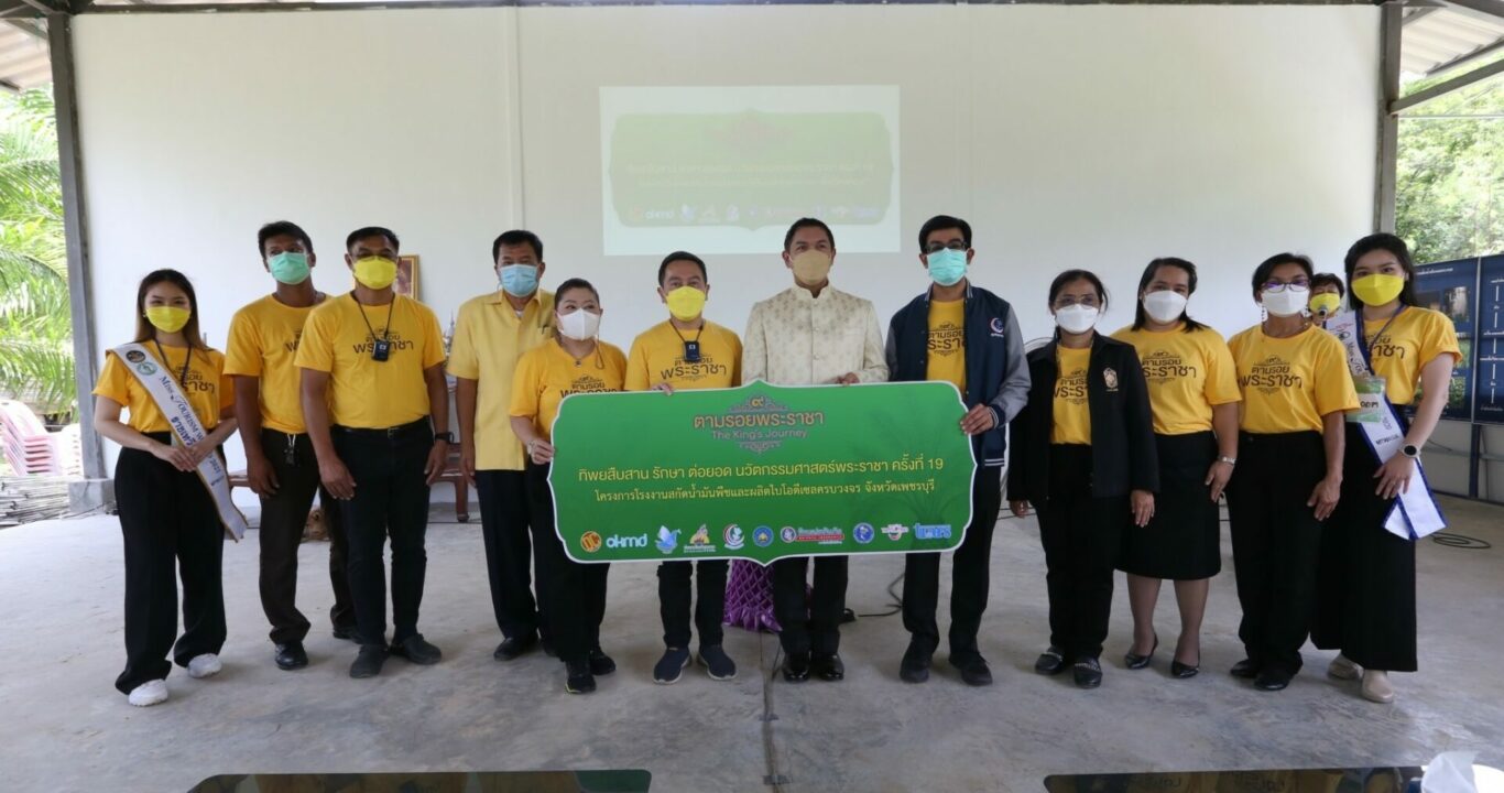 นายธรรมนูญ ศรีวรรธนะ (ที่ 6 จากขวา) รองผู้ว่าราชการจังหวัดเพชรบุรี เป็นประธานเปิดงาน “ทิพยสืบสาน รักษา ต่อยอด นวัตกรรมศาสตร์พระราชา ครั้งที่ 19” โดยมี นางวิชชุดา ไตรธรรม ( ที่ 5 จากซ้าย) ที่ปรึกษากรรมการผู้จัดการใหญ่ บริษัท ทิพยประกันภัย จำกัด (มหาชน) พร้อมด้วย รศ. นพ. สุริยเดว ทรีปาตี (ที่ 5 จากขวา) ผู้อำนวยการศูนย์คุณธรรม (องค์การมหาชน) ดร. ดนัย จันทร์เจ้าฉาย (ที่ 6 จากซ้าย) ประธานมูลนิธิธรรมดี อาจารย์อดุลย์ ดาราธรรม (ที่ 3 จากซ้าย) นายกสมาคมนักเรียนเก่า AFS ประเทศไทย ร่วมให้การต้อนรับ โดยได้รับเกียรติจาก อาจารย์สัญห์ชัย กลิ่นพิกุล (ที่ 4 จากซ้าย) ผู้ถวายงานการพัฒนาปาล์มน้ำมันแด่ในหลวงรัชกาลที่ 9 ร่วมบรรยายให้ความรู้ด้านการผลิตไบโอดีเซลแก่ผู้ร่วมงาน เป็นกิจกรรมที่สอดคล้องกับการดูแลรักษาสิ่งแวดล้อมและพัฒนาเศรษฐกิจควบคู่ไปกับการพัฒนาสังคมและสิ่งแวดล้อมได้อย่างสมดุลและยั่งยืน ตามหลัก BCG โมเดล Bio – Circular- Green Economy ณ โครงการโรงงานสกัดน้ำมันพืชและผลิตไบโอดีเซล ครบวงจร จ.เพชรบุรี เมื่อเร็วๆ นี้