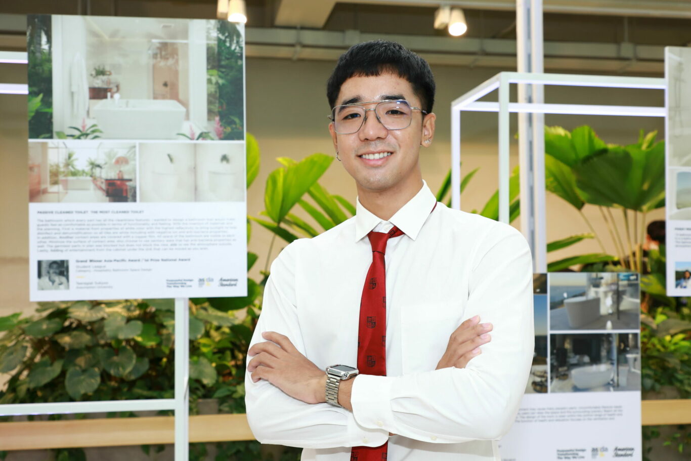 ส่วนรางวัลชนะเลิศด้านการออกแบบพื้นที่ใช้สอยในห้องน้ำของโรงแรม ได้แก่ นายธีรเกียรติ สุขอยู่ นักศึกษาคณะสถาปัตยกรรมศาสตร์ มหาวิทยาลัยอัสสัมชัญ ประเทศไทย ด้วยแนวคิดการออกแบบที่รวบรวมคุณสมบัติด้านสุขอนามัยที่ล้ำสมัยตั้งแต่พื้นผิวไปจนถึงผลิตภัณฑ์ เพื่อส่งมอบสุขอนามัยระดับสูงสุดโดยแทบไม่ต้องทำความสะอาด เพื่อประสบการณ์การเข้าพักที่ไร้กังวลอย่างแท้จริงสำหรับแขกของโรงแรม “รู้สึกภูมิใจมากที่ได้รับรางวัลชนะเลิศครับ การประกวดครั้งนี้มีความหมายต่อชีวิตผมในหลายด้าน โดยเฉพาะการได้เติมเต็มไอเดียและทำให้มีโอกาสได้พิสูจน์ตัวเองเพื่อยืนยันถึงแนวความคิดของเราว่ามีความเป็นไปได้และใช้งานได้จริง หัวใจหลักที่ผมใช้ในการออกแบบผลงาน คือ ในฐานะผู้ออกแบบเราไม่สามารถบังคับพฤติกรรมผู้ใช้ที่มีความต่างกันได้แต่เราสามารถสร้างพื้นที่ที่ผู้ใช้ใช้งานร่วมกันได้ หลังจากเรียนจบผมฝันอยากเป็นนักออกแบบที่สร้างสรรค์ผลงานที่เชื่อมโยงกับธรรมชาติและสิ่งแวดล้อมที่เป็นมิตรต่อโลก ประหยัดพลังงาน ตอบโจทย์ชีวิตผู้คน และเป็นพลังเล็ก ๆ ที่ได้ช่วยโลกให้น่าอยู่ขึ้นครับ” คุณธีรเกียรติ กล่าว