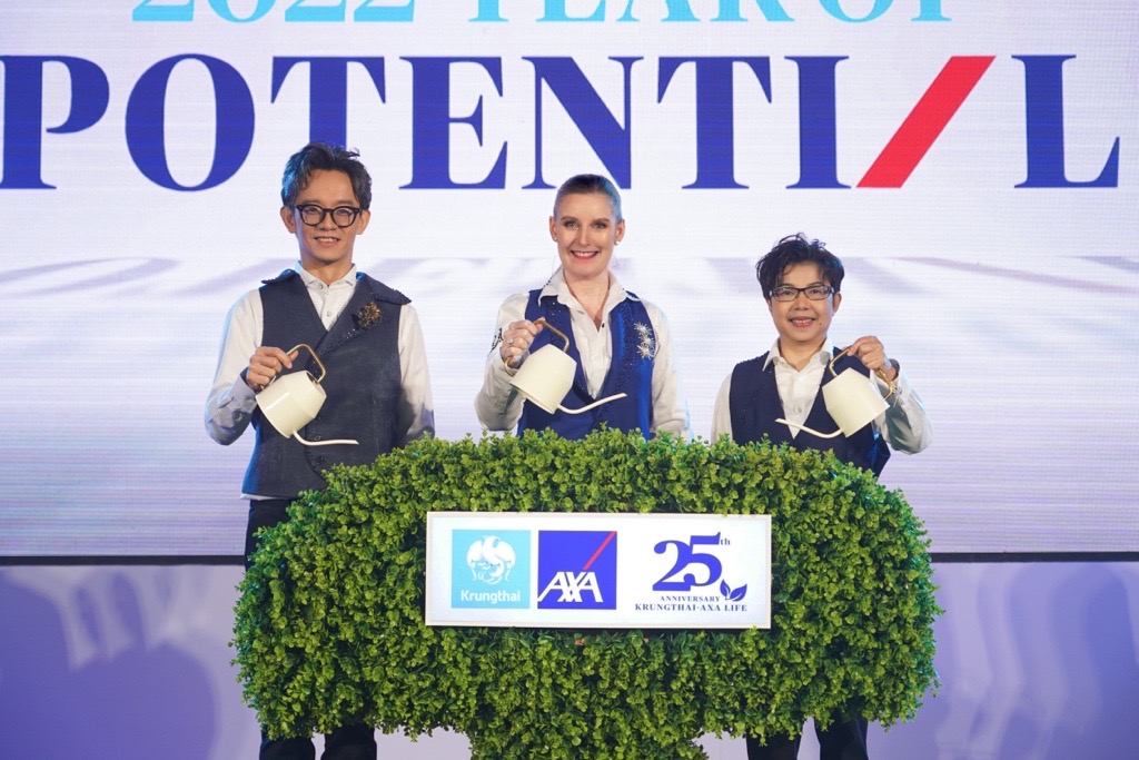 บมจ.กรุงไทย-แอกซ่า ประกันชีวิต จัดงาน “Agency Leader Midyear Seminar 2022” ในรูปแบบไฮบริด นำโดย นางแซลลี่ โอฮาร่า ประธานเจ้าหน้าที่บริหาร (คนกลาง) นายชัยณรงค์ เอื้อสิทธิชัย ประธานเจ้าหน้าที่บริหาร ฝ่ายจัดจำหน่าย (ซ้าย) นางสาวบุปผาวดี โอวรารินท์ ประธานเจ้าหน้าที่บริหาร ฝ่ายทรัพยากรบุคคลและภาพลักษณ์องค์กรและการสื่อสารองค์กร (ขวา) และผู้บริหารระดับสูงของบริษัทฯ ร่วมนำทัพนักขาย ก้าวสู่ความสำเร็จที่ยั่งยืน ในช่วงครึ่งปีหลังด้วยความมุ่งมั่น และมั่นใจ เพื่อพิชิตเป้าหมาย ปี 2022 พร้อมตอกย้ำจุดยืน “2022 Year of  Potential ปีแห่งศักยภาพที่ยิ่งใหญ่” โดยมุ่งมั่นที่จะอยู่เคียงข้างทุกความเชื่อมั่น ดูแลลูกค้า รวมถึงฝ่ายขายทุกท่าน พร้อมทั้งให้การสนับสนุน และยกระดับให้ฝ่ายขาย ประสบความสำเร็จในอาชีพตั้งแต่เริ่มต้น จนก้าวสู่การเป็นนักขายมืออาชีพระดับ AXA Prime
