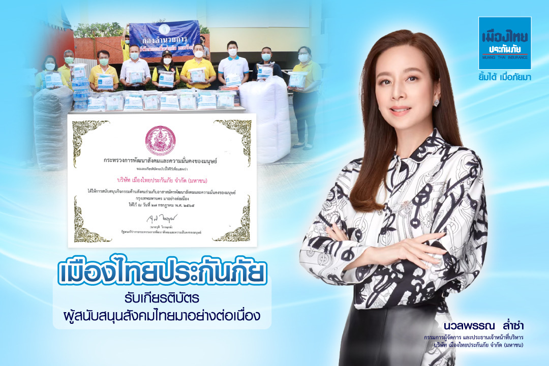 บริษัท เมืองไทยประกันภัย จำกัด (มหาชน) ภายใต้การบริหารงานของ นางนวลพรรณ ล่ำซำ กรรมการผู้จัดการ และประธานเจ้าหน้าที่บริหาร ได้รับเกียรติบัตรเพื่อยกย่องเกียรติแห่งการช่วยเหลือสังคมไทยในด้านการสนับสนุนกิจกรรมด้านสังคมร่วมกับอาสาสมัครพัฒนาสังคมและความมั่นคงของมนุษย์ กรุงเทพมหานคร มาอย่างต่อเนื่อง จากกระทรวงการพัฒนาสังคมและความมั่นคงของมนุษย์ ในงานเทิดไท้องค์ราชัน เนื่องในโอกาสวันเฉลิมพระชนมพรรษา พระบาทสมเด็จพระวชิรเกล้าเจ้าอยู่หัว โดยงานจัดขึ้นเมื่อวันที่ 27 กรกฎาคม 2565 ที่ผ่านมา ณ อาคารกรมพัฒนาสังคมและสวัสดิการ กระทรวงการพัฒนาสังคมและความมั่นคงของมนุษย์