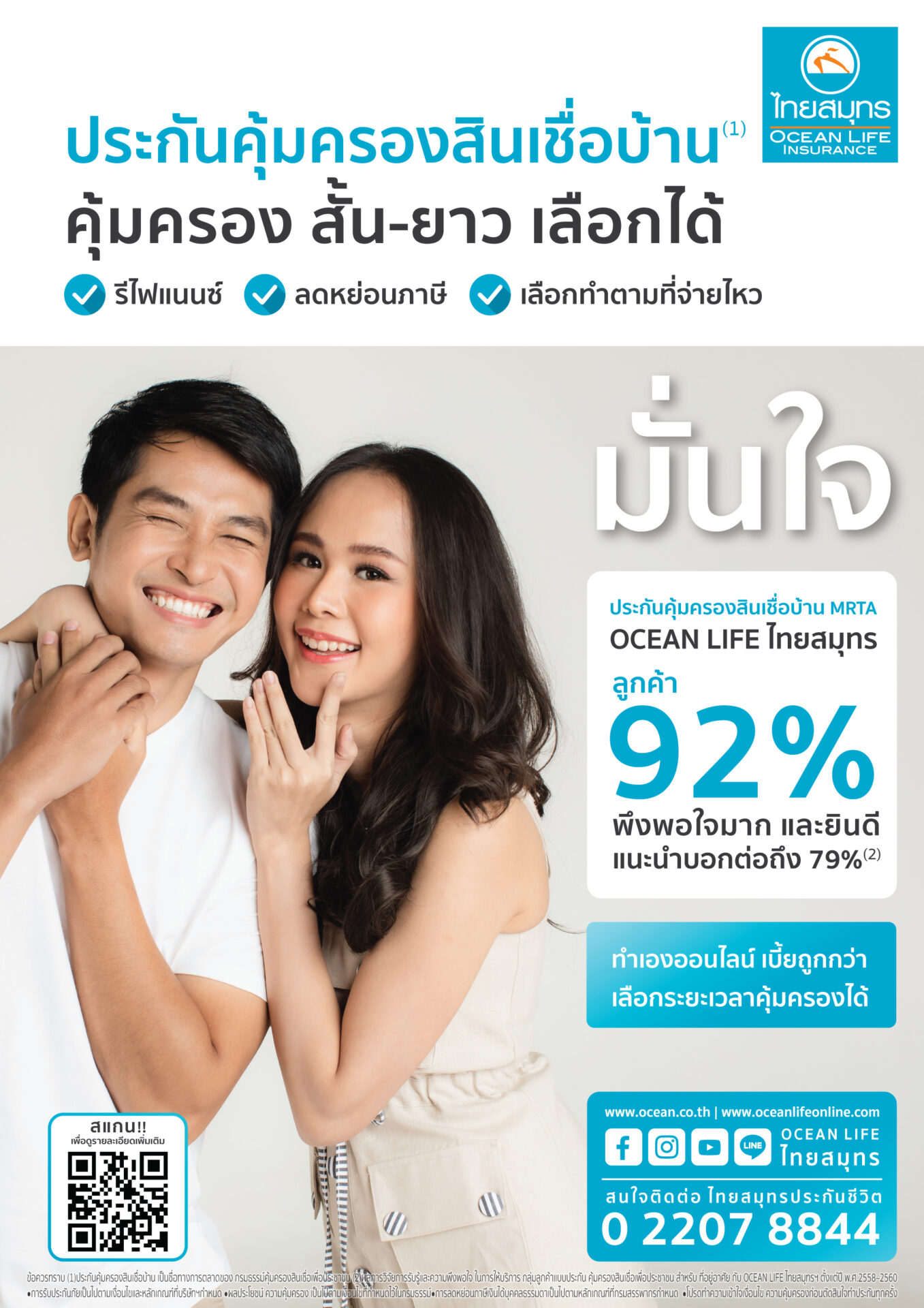 OCEAN LIFE ไทยสมุทร ส่งประกันคุ้มครองสินเชื่อบ้าน (MRTA)* ที่ทำเองได้ ทำง่าย เบี้ยถูก เลือกระยะเวลาคุ้มครองได้ เอาใจคนซื้อบ้านหลังแรก
