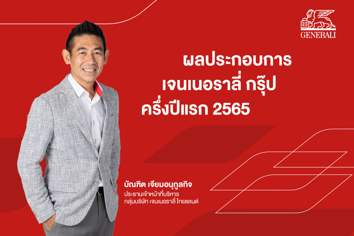 นายบัณฑิต เจียมอนุกูลกิจ ประธานเจ้าหน้าที่บริหาร กลุ่มบริษัทเจนเนอราลี่ ไทยแลนด์ เปิดเผยในงานประชุมพนักงานประจำปี 2022 (Town Hall) ว่า “ภาพรวมของธุรกิจประกันชีวิตทั่วโลกในช่วงครึ่งปีแรกของปี 2022 ยังคงชะลอตัวเนื่องจากผลกระทบสถานการณ์เงินเฟ้อ รวมถึงปัจจัยอย่างสถานการณ์โควิด-19 และเหตุความขัดแย้งในต่างประเทศ ส่งผลให้อัตราการเติบโตของเบี้ยประกันภัยรับรวมมีจำนวนลดลงเมื่อเทียบกับปีก่อนในช่วงเดียวกัน แต่ในทางกลับกันผลประกอบการช่วงครึ่งปีแรก 2022 ของเจนเนอราลี่ กรุ๊ป กลับสวนกระแสดังกล่าว มีอัตราเติบโตตามเป้าที่วางไว้ อันเป็นผลมาจากการปรับพอร์ตเชิงกลยุทธ์โดยเน้นผลิตภัณฑ์ประเภทการให้ความคุ้มครอง และการปรับเปลี่ยนโครงสร้างธุรกิจโดยมีสัดส่วนของการประกันภัยต่อเพิ่มสูงขึ้น เป็นต้น ภาพรวมของ เจนเนอราลี่ กรุ๊ป ช่วงครึ่งปีแรกของปี 2022 มีอัตราการเติบโตเป็นไปตามเป้าที่วางไว้ โดยมีกำไรจากผลการดำเนินงาน (Operating profit) อยู่ที่ 1.2 แสนล้านบาท (+4.8%) จากผลการดำเนินงานที่เป็นบวกของกลุ่มธุรกิจประกันชีวิต ธุรกิจประกันภัยทรัพย์สินและเบ็ดเตล็ด (P&C) การถือหุ้นและกลุ่มธุรกิจอื่น ๆ คิดเป็นอัตราส่วนรวมอยู่ที่ร้อยละ 92.5  (Combined Ratio, +2.8 p.p.) พร้อมทั้งมีผลกำไรขั้นต้นจากธุรกิจใหม่อยู่ที่ร้อยละ 5.23 (New Business Margin, +0.59 p.p.) เบี้ยประกันภัยรับรวมทั้งสิ้น 16.1 แสนล้านบาท (Gross Written Premium, +2.4%) ซึ่งเป็นแรงหนุนจากการเติบโตที่แข็งแกร่งในธุรกิจประกันภัยทรัพย์สินและเบ็ดเตล็ด (+8.5%) ส่งผลให้กระแสเงินลงทุนไหลเข้าของธุรกิจประกันชีวิต (Life Net Inflows) อยู่ที่ 2.4 แสนล้านบาท โดยยังคงความสามารถในการชำระหนี้ (Solvency Ratio) อยู่ในระดับแข็งแกร่งที่ร้อยละ 233 ตอกย้ำความเป็นผู้นำของเจนเนอราลี่ กรุ๊ป ในฐานะบริษัทประกันและผู้บริหารสินทรัพย์ระดับโลก”