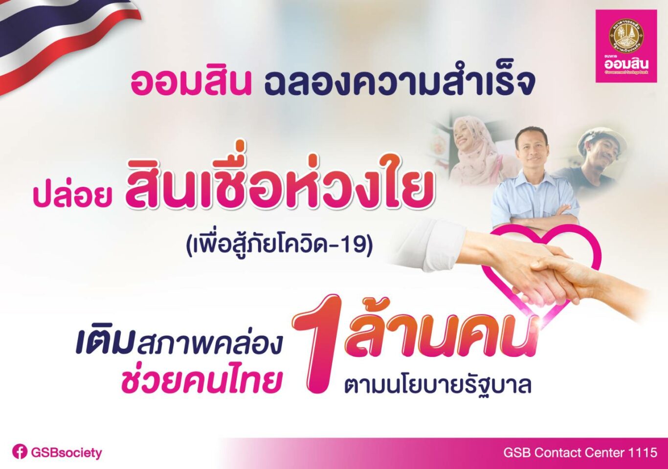 ทั้งนี้ สินเชื่อห่วงใย (เพื่อสู้ภัยโควิด-19) วงเงินโครงการ 10,000 ล้านบาท เพื่อเพิ่มสภาพคล่องในชีวิตประจำวันให้แก่ผู้ได้ผลกระทบจาก COVID-19 ให้กู้รายละไม่เกิน 10,000 บาท อัตราดอกเบี้ยคงที่เพียงร้อยละ 0.35 ต่อเดือน พร้อมเงื่อนไขพิเศษ ไม่ต้องมีผู้ค้ำและไม่ต้องมีหลักประกันการกู้ รวมถึงผ่อนปรนให้ผู้กู้ไม่ต้องชำระทั้งเงินต้นและดอกเบี้ย 6 งวดแรก กำหนดระยะเวลาชำระคืนเงินกู้ไม่เกิน 2 ปี โดยยื่นกู้ผ่านช่องทางแอปพลิเคชัน MyMo