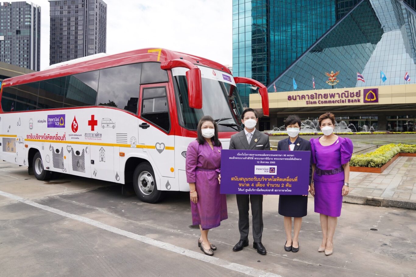 เนื่องในโอกาสมหามงคลเฉลิมพระชนมพรรษา 90 พรรษา สมเด็จพระนางเจ้าสิริกิติ์ พระบรมราชินีนาถ พระบรมราชชนนีพันปีหลวง สภานายิกาสภากาชาดไทย ธนาคารไทยพาณิชย์ จัดสร้างและส่งมอบรถรับบริจาคโลหิตเคลื่อนที่ ขนาด 4 เตียง พร้อมอุปกรณ์เครื่องมือที่จำเป็น จำนวน 2 คัน โดย นายกฤษณ์ จันทโนทก ประธานเจ้าหน้าที่บริหาร ธนาคารไทยพาณิชย์ มอบให้แก่ศูนย์บริการโลหิตแห่งชาติ สภากาชาดไทย เพื่อเป็นการเฉลิมพระเกียรติ ถวายเป็นพระราชกุศล และสนับสนุนภารกิจของศูนย์บริการโลหิตแห่งชาติฯ ในการเพิ่มศักยภาพการจัดหาโลหิตอย่างเพียงพอและปลอดภัย เพื่อนำไปช่วยรักษาผู้ป่วยทั่วประเทศ
