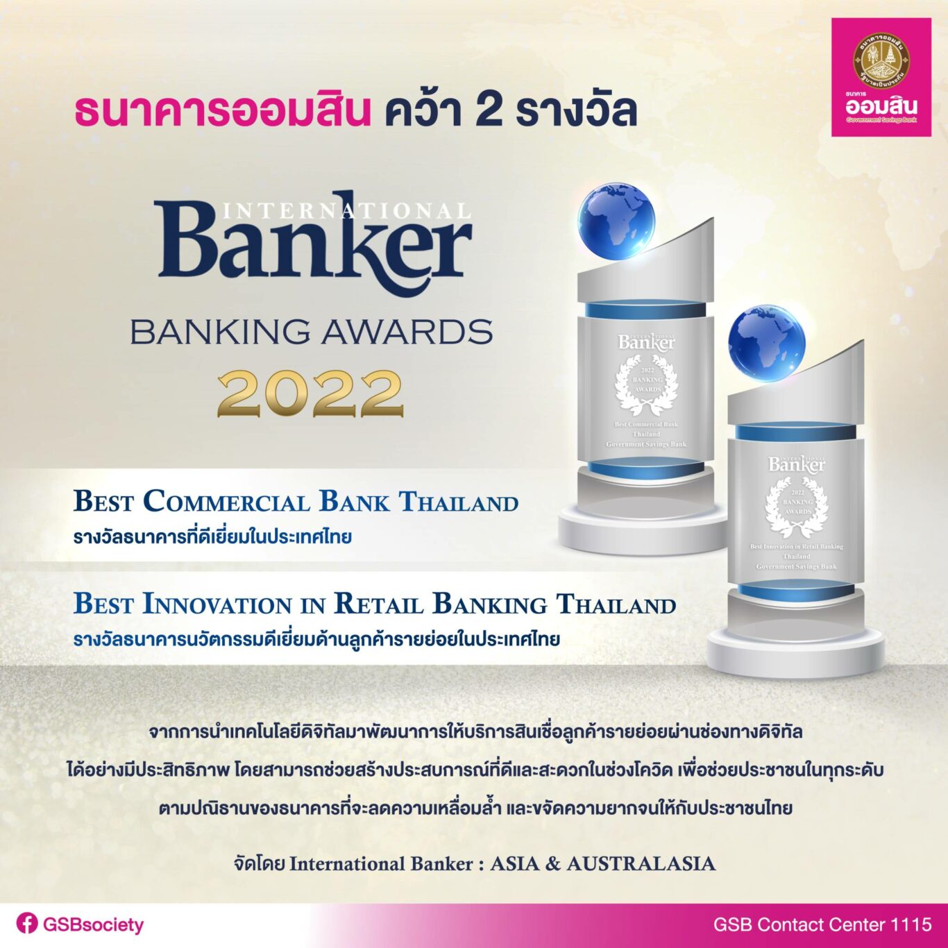ออมสิน คว้า 2 รางวัล International Banker 2022 Banking Awards