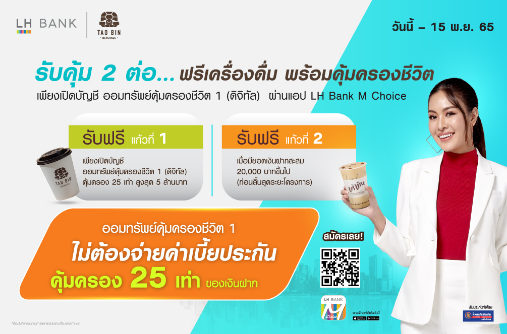 โปรโมชันพิเศษ! สำหรับลูกค้าใหม่ ตั้งแต่วันนี้ ถึง 15 พ.ย. 65 รับฟรี…เครื่องดื่มเต่าบิน เมื่อเปิดบัญชีออมทรัพย์ดิจิทัล คุ้มครองชีวิต 1 รับคุ้ม 2 ต่อ ฟรีเครื่องดื่ม พร้อมได้ความคุ้มครองชีวิต กับโปรโมชันพิเศษ