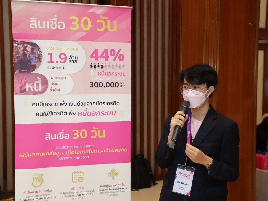 ส่วนอีก 4 ทีม ได้แก่ ทีม “ออม(หนี้)สิน” กับผลงาน “MyMore Application” แพลตฟอร์มที่ส่งเสริมการบริหารทางการเงิน และช่วยสร้างเครดิตในการเข้าถึงแหล่งเงินกู้ในระบบ ทีม “Darari” กับผลงาน “เติมเต็ม” เป็นสินเชื่อดิจิทัลดอกเบี้ยต่ำควบคู่ประกันสังคม ทีม “Hearty Shawls” จากผลงาน “มีกิน มีอนาคต” แอปพลิเคชันช่วยวิเคราะห์และให้คำแนะนำสถานภาพทางการเงินให้กับผู้ให้บริการรถ Taxi วินมอเตอร์ไซด์ และสามล้อ และทีม “227 Consulting” จากผลงาน “สลากให้ ไว้ ยืน” เป็นสลากออมสินที่เจาะกลุ่มคนชอบเสี่ยงโชค เพื่อตัดวงจรการสร้างหนี้สินของคนฐานราก