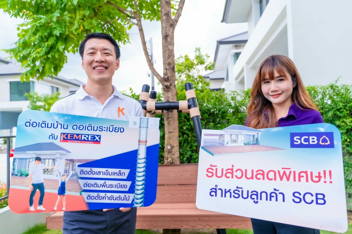 ไทยพาณิชย์ จับมือ เข็มเหล็ก (KEMREX) ผู้นำด้านฐานรากคุณภาพ ร่วมกันสร้างอีโคซิสเต็มด้านที่อยู่อาศัยผ่านแคมเปญ “ต่อเติมบ้าน ต่อเติมระเบียง กับ KEMREX” ให้ลูกค้า SCB และลูกค้าสินเชื่อบ้านใหม่ SCB ได้วงเงินอเนกประสงค์เพื่อใช้ต่อเติมบ้าน หมดความกังวลใจค่าใช้จ่ายบานปลาย โดยเข็มเหล็กจะดูแลงานต่อเติมบ้านด้วยนวัตกรรมฐานรากให้ลูกค้ามั่นใจได้วัสดุมาตรฐานสูง มั่นคง แข็งแรง
