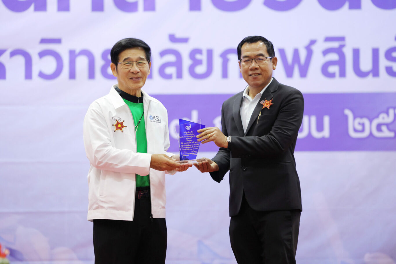 บริษัท กรุงเทพประกันภัย จำกัด (มหาชน) หรือ BKI โดยนายรักเกียรติ โคตรทุม (ขวา) ผู้จัดการสาขาขอนแก่น เป็นผู้แทนบริษัทฯ รับโล่ประกาศเกียรติคุณการสนับสนุนทุนการศึกษาเนื่องในวันสถาปนามหาวิทยาลัยกาฬสินธุ์ครบรอบ 7 ปี จาก ศาสตราจารย์กิตติคุณ นพ.สุทธิพร จิตต์มิตรภาพ (ซ้าย) นายกสภามหาวิทยาลัยกาฬสินธุ์ ในฐานะที่บริษัทฯ สนับสนุนทุนการศึกษาระดับปริญญาตรีให้แก่นักศึกษาของมหาวิทยาลัยที่ขาดแคลนทุนทรัพย์อย่างต่อเนื่อง โดยให้ความสำคัญกับการมอบโอกาสทางการศึกษาของนักเรียน นิสิต นักศึกษาที่ขาดแคลนทุนทรัพย์ ณ มหาวิทยาลัยกาฬสินธุ์ จ.กาฬสินธุ์ เมื่อเร็วๆ นี้