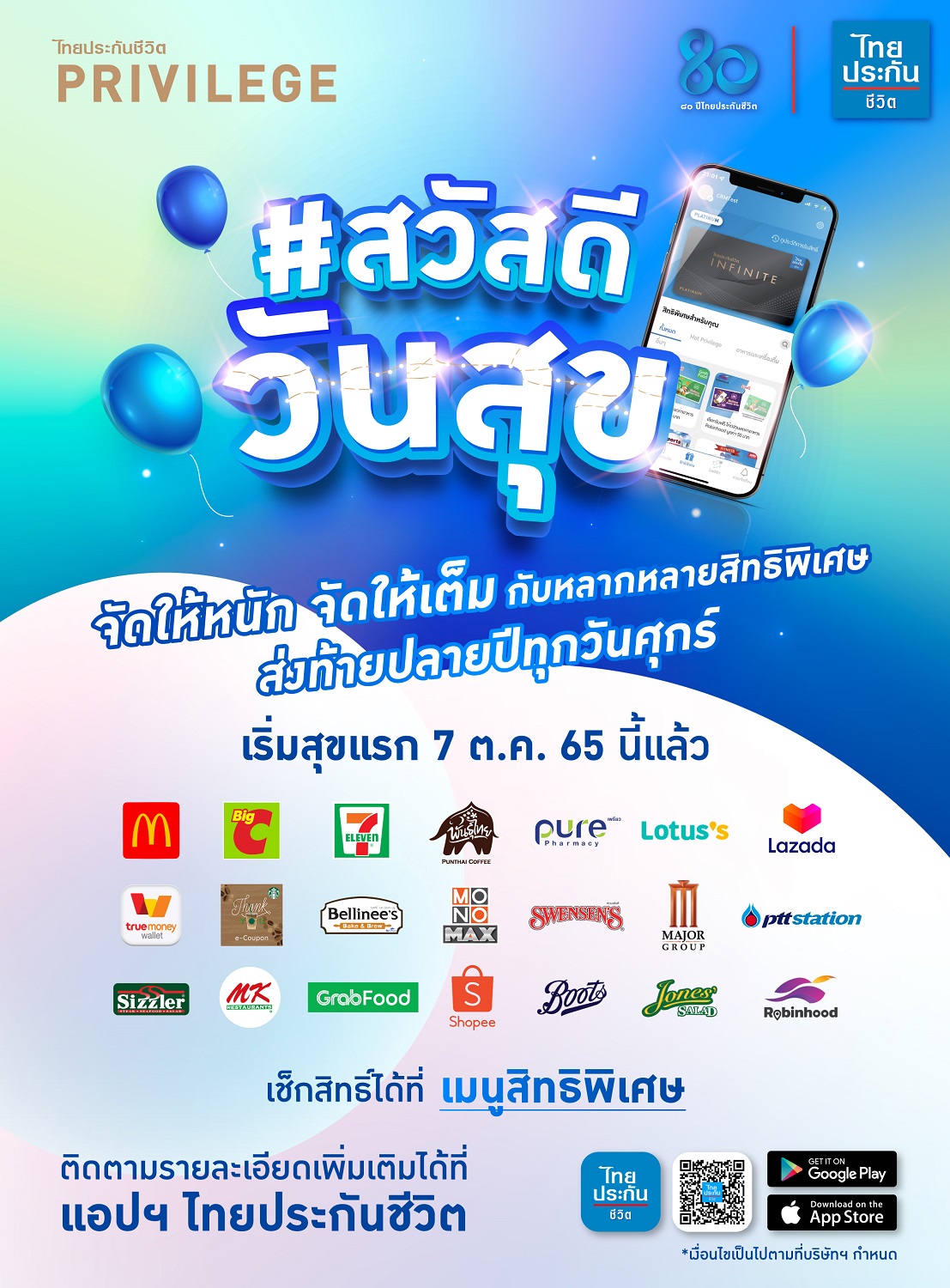 ไทยประกันชีวิต จัดแคมเปญ “สวัสดี วันสุข 2565” มอบสิทธิพิเศษส่งความสุขทุกวันศุกร์ สำหรับลูกค้าไทยประกันชีวิต PRIVILEGE ทุกระดับ ผ่านแอปพลิเคชัน ไทยประกันชีวิต