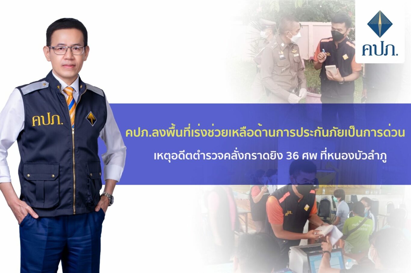 ดร.สุทธิพล ทวีชัยการ เลขาธิการคณะกรรมการกำกับและส่งเสริมการประกอบธุรกิจประกันภัย (เลขาธิการ คปภ.) เปิดเผยว่า จากกรณีอดีตตำรวจได้ก่อเหตุสะเทือนขวัญโดยใช้อาวุธปืนและมีดทำร้ายครูและนักเรียนเด็กเล็กภายในศูนย์พัฒนาเด็กเล็ก องค์การบริหารส่วนตำบลอุทัยสวรรค์ อำเภอนากลาง จังหวัดหนองบัวลำภู รวมทั้งใช้อาวุธปืนยิงภรรยา ลูก และตัวเองเสียชีวิตภายในบ้านพัก รวมมีผู้เสียชีวิต 36 ราย บาดเจ็บ 12 ราย นั้น ทันทีที่ทราบข่าว เลขาธิการ คปภ. ได้สั่งการให้สายคุ้มครองสิทธิประโยชน์ เร่งบูรณาการการทำงานร่วมกับสายส่งเสริมและประกันภัยภูมิภาค โดยสำนักงาน คปภ. ภาค 3 (ขอนแก่น) และสำนักงาน คปภ. จังหวัดอุดรธานี ซึ่งดูแลรับผิดชอบพื้นที่จังหวัดหนองบัวลำภู ได้ติดตามและลงพื้นที่แล้วและได้มีการตั้งศูนย์เพื่ออำนวยความสะดวกด้านประกันภัยเพื่อบูรณาการการตรวจสอบข้อมูลร่วมกับสมาคมประกันวินาศภัยไทย สมาคมประกันชีวิตไทย และ บริษัทประกันภัยว่าศูนย์พัฒนาเด็กเล็กฯ ผู้เสียชีวิต หรือผู้บาดเจ็บจากเหตุการณ์นี้มีการทำประกันภัยกลุ่มหรือประกันภัยส่วนบุคคลประเภทอื่น ๆ ไว้หรือไม่