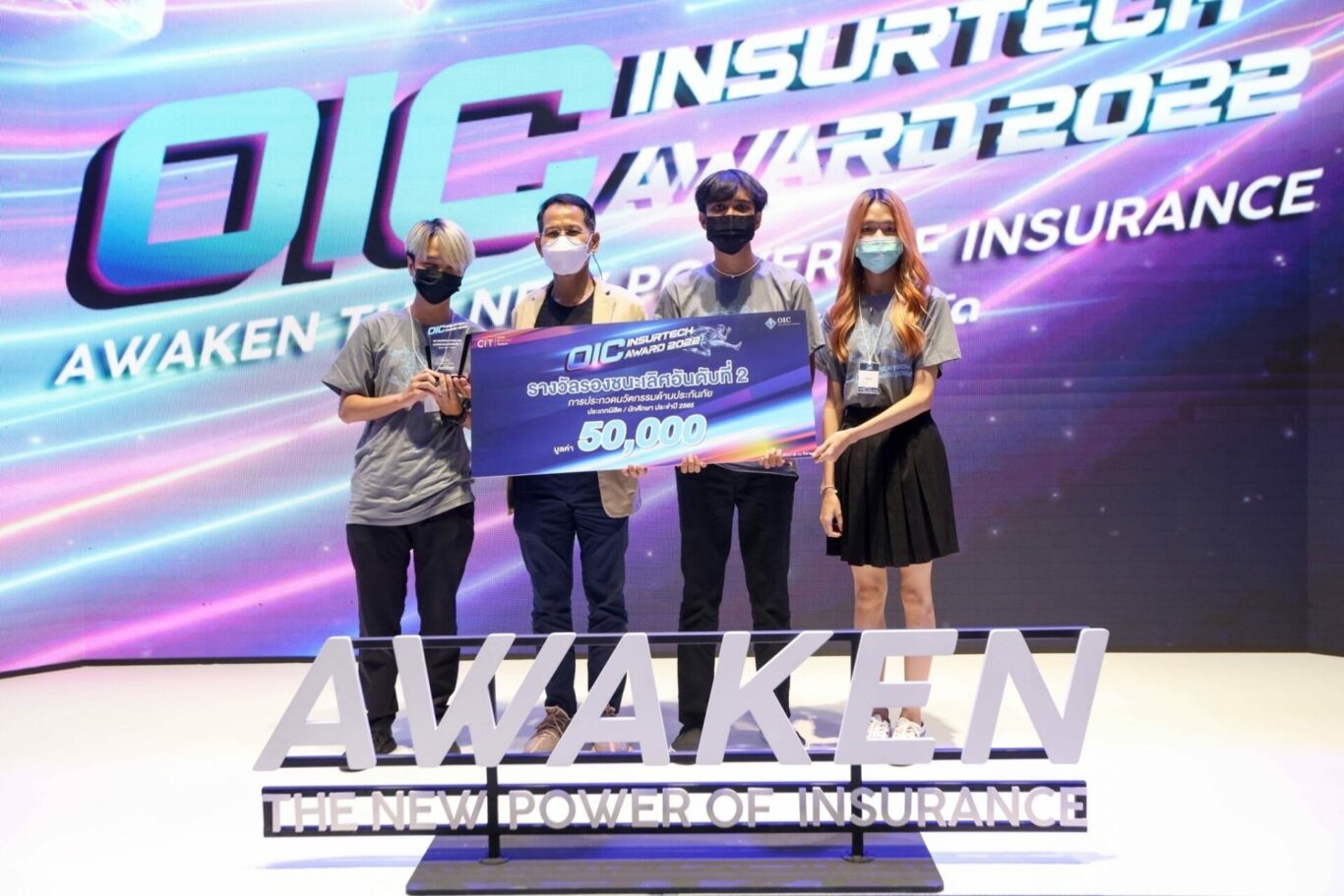 สำหรับผลการตัดสินการประกวดนวัตกรรมเทคโนโลยีด้านการประกันภัย OIC InsurTech Award 2022 ประเภทนิสิต / นักศึกษา รางวัลชนะเลิศ ได้แก่ ทีม Schmettering ภายใต้แนวคิด “จากแนวโน้มที่มีผู้ป่วยทางจิตเวชเพิ่มขึ้น และผู้ป่วยบางรายมีความกังวลกับการพูดคุยต่อหน้ากับนักจิตบำบัดหรือจิตแพทย์ จึงได้คิดค้น Application สำหรับผู้ป่วยทางจิตเวช สามารถพบนักนักจิตบำบัดหรือจิตแพทย์ทางออนไลน์ เพื่อทำการวินิจฉัยประเมินวัดความเสี่ยง และคำนวณเบี้ยประกันภัยที่เหมาะสมโดยใช้เทคโนโลยี AI” โดยได้รับเงินรางวัลมูลค่า 100,000 บาท พร้อมโล่รางวัล รางวัลรองชนะเลิศอันดับ 1 ได้แก่ ทีม Plantpot ภายใต้แนวคิด “Long term health care insurance ประกันภัยสุขภาพรูปแบบใหม่สำหรับสังคมยุคใหม่” และรางวัลรองชนะเลิศอันดับ 2 ได้แก่ ทีม METTA ภายใต้แนวคิด “Community สำหรับผู้สูงวัยบน Metaverse เพื่อการเสนอขายประกันภัยที่ใช่ สำหรับไลฟ์สไตล์ที่ชอบ” และรางวัลชมเชยลำดับที่ 1 ได้แก่ ทีม Code Line ภายใต้แนวคิด “Application เพื่อ surveyor ยกระดับการเคลมรถยนต์และการบริการลูกค้า” รางวัลชมเชยลำดับที่ 2 ได้แก่ ทีม Infinity ภายใต้แนวคิด “เพิ่มประสิทธิภาพการประเมินความเสียหายรถยนต์ในโลกเสมือนจริง ผ่านเทคโนโลยี MR”