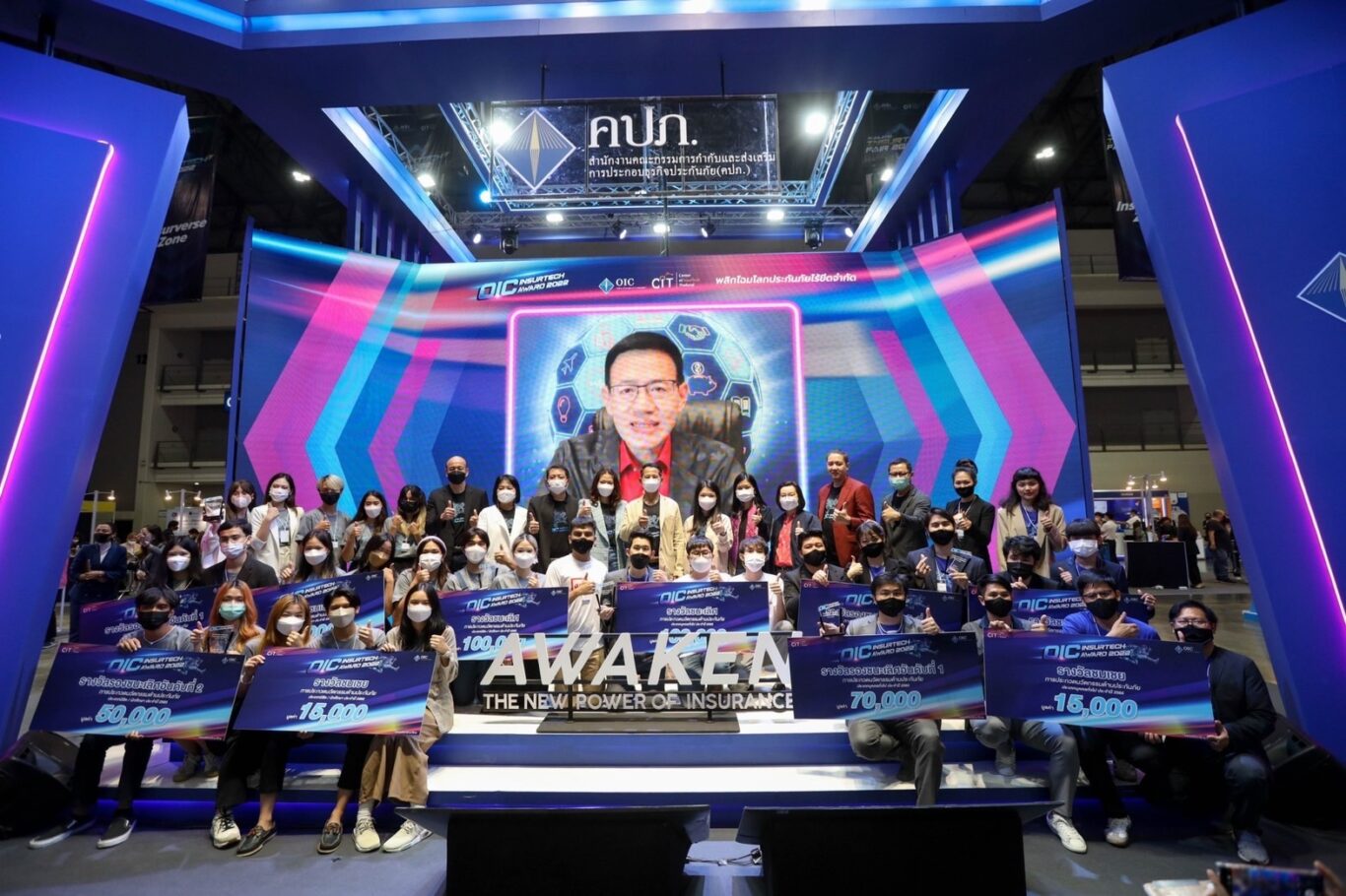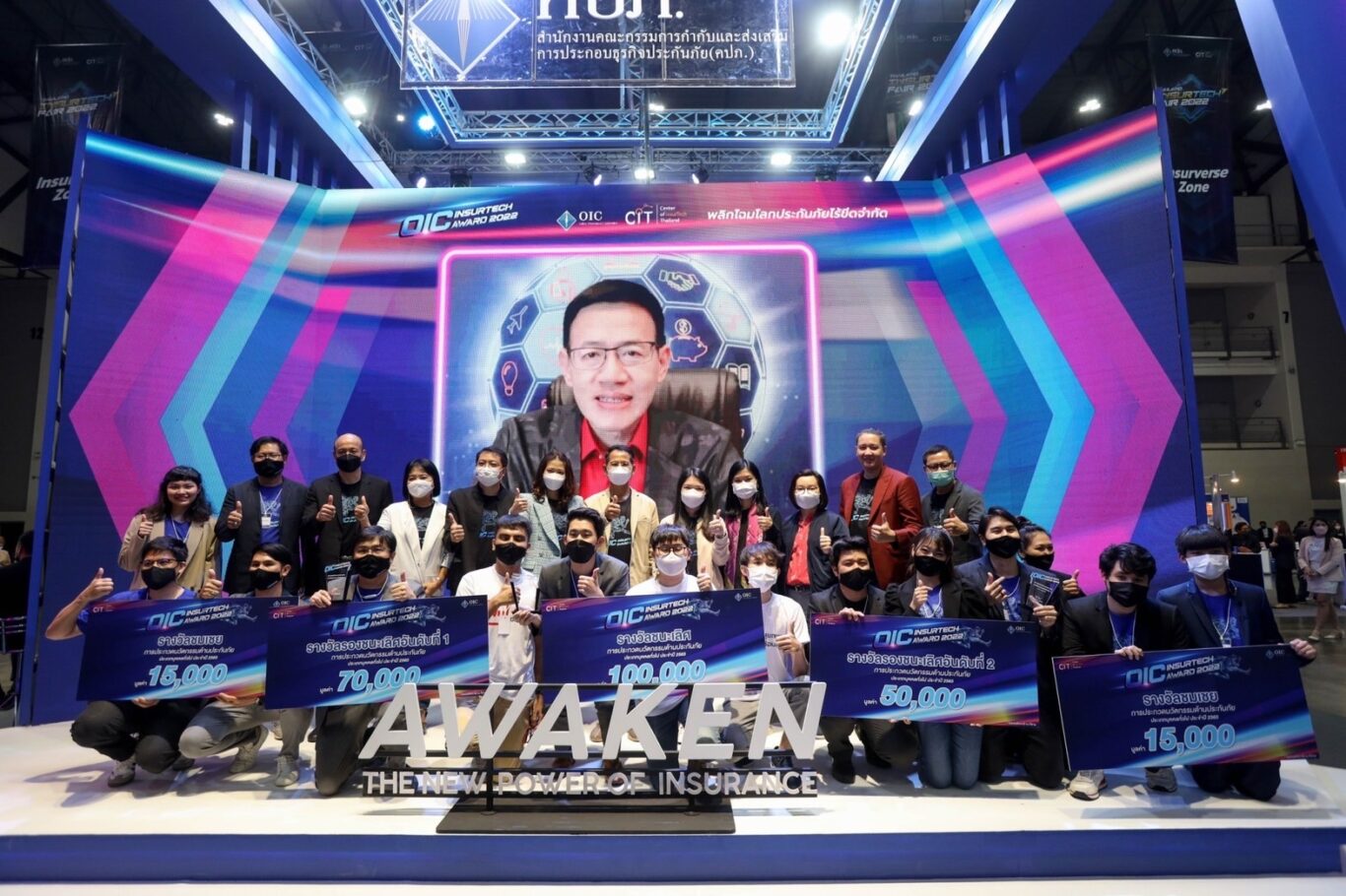 “ผมหวังเป็นอย่างยิ่งว่าโครงการปีนี้จะช่วยส่งเสริมความรู้พื้นฐานด้านการประยุกต์ใช้เทคโนโลยีในอุตสาหกรรมประกันภัยให้แก่ กลุ่มนิสิต นักศึกษา บุคลากรในวงการประกันภัย และ Tech Firm ที่มีความสนใจได้นำความรู้ไปพัฒนานวัตกรรมด้านการประกันภัยได้อย่างมีประสิทธิภาพ และขอแสดงความยินดีกับทีมที่ได้รับรางวัลทุกทีม ขอให้รักษาคุณภาพและหมั่นพัฒนาศักยภาพให้ดียิ่งขึ้น เพื่อจะได้นำความรู้มาต่อยอดและช่วยกันพัฒนา InsurTech ของประเทศไทยให้ก้าวหน้ายิ่งขึ้นต่อไป” เลขาธิการ คปภ. กล่าวในตอนท้าย