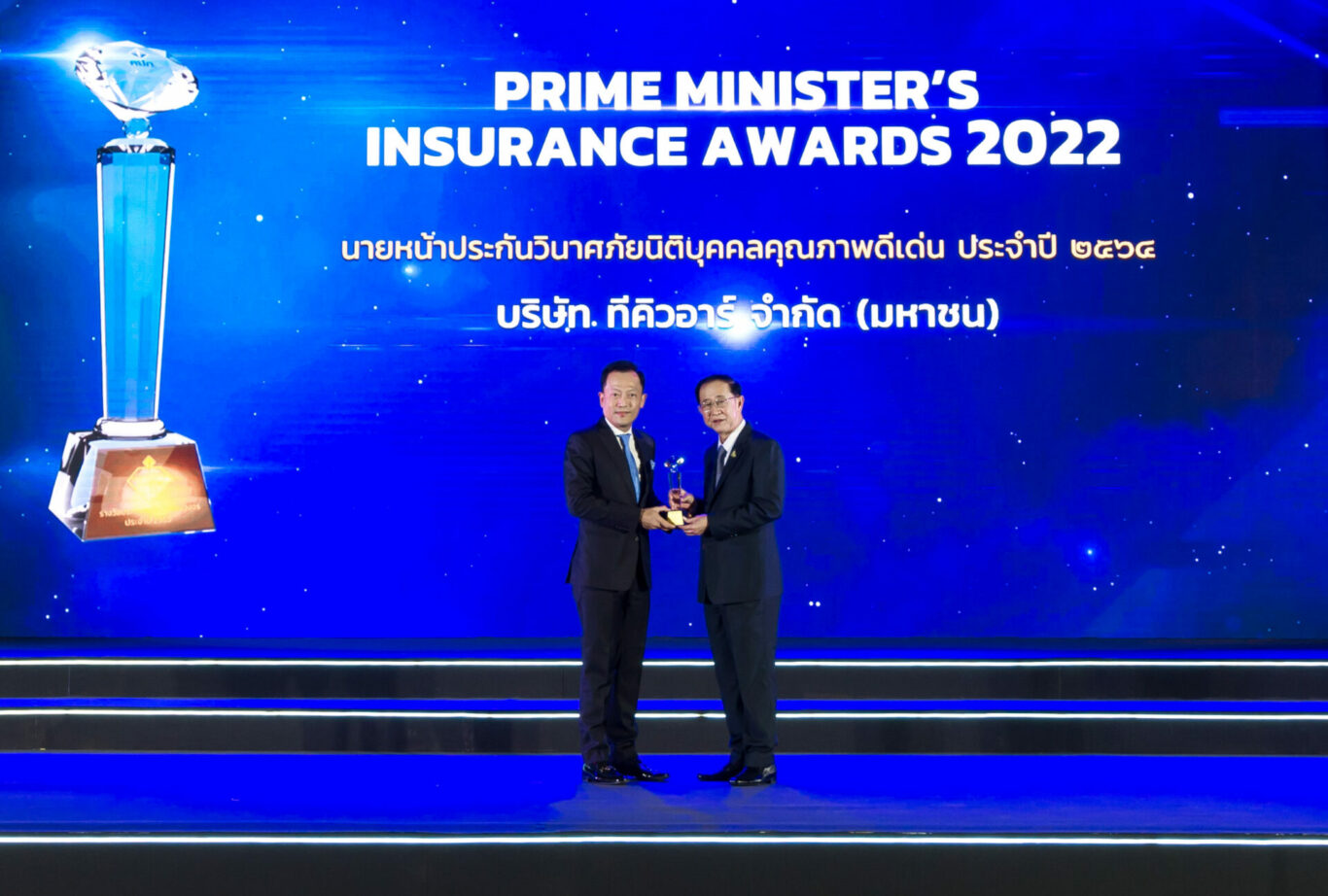 นายอาคม เติมพิทยาไพสิฐ รัฐมนตรีว่าการกระทรวงการคลัง ร่วมเป็นประธานในพิธีมอบรางวัลประกันภัยดีเด่นครบวงจร ประจำปี 2565 (PRIME MINISTER’S INSURANCE AWARDS 2022) ภายในงาน Thailand InsurTech Fair 2022 จัดขึ้นโดยสำนักงานคณะกรรมการกำกับและส่งเสริมการประกอบธุรกิจประกันภัย (คปภ.) และได้มอบรางวัลนายหน้าประกันวินาศภัยนิติบุคคลคุณภาพดีเด่น ประจำปี 2564 ให้กับ นายชนะพันธุ์ พิริยะพันธุ์ ประธานเจ้าหน้าที่บริหาร บริษัท ที คิว อาร์ จำกัด (มหาชน) หรือ TQR