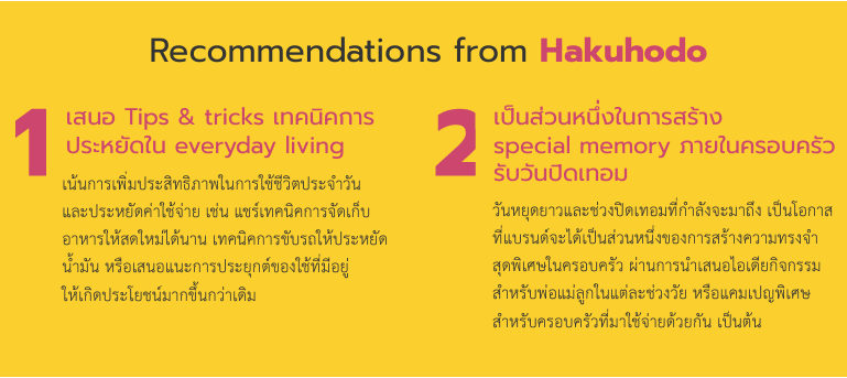 ● แนะแบรนด์เสนอเทคนิคในการประหยัดในชีวิตประจำวัน และจับกลุ่มครอบครัว สร้างการมีส่วนร่วมพิเศษในช่วงลูกๆ ปิดเทอม