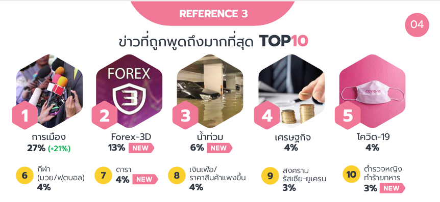 ความสนใจของคนไทยในขณะนี้คงหนีไม่พ้นเรื่องของข่าวสารบ้านเมือง เศรษฐกิจ ชีวิตประจำวัน จากผลสำรวจเห็นได้ชัดว่า ขณะนี้คนไทยสนใจข่าวเกี่ยวกับการเมืองสูงสุด นายธีรเมศร์ นิติจรรยาวงศ์, ผู้อำนวยการฝ่ายวางแผนกลยุทธ์การสื่อสาร บริษัท ฮาคูโฮโด โอทู จำกัด ได้กล่าวถึงเรื่องนี้ไว้ว่า ‘ขณะนี้ข่าวการเมืองร้อนแรงที่สุด คนไทยให้ความสนใจมาก โดยเฉพาะเรื่องวาระครบ 8 ปี ของนายกรัฐมนตรี คนไทยกำลังจับตามองว่าบทสรุปของเรื่องนี้จะไปจบในทิศทางไหน หรือแม้กระทั่งเรื่องผู้ว่าฯ กทม. คนใหม่ ว่าจะจัดการปัญหาน้ำท่วมที่ต้องพบเจอทุกปีอย่างไร จะมีการเปลี่ยนแปลงได้มากแค่ไหน แต่ในขณะเดียวกันก็มีเรื่อง Forex3D ที่คนไทยให้ความสนใจเป็นจำนวนไม่น้อย เพราะเป็นคดีฉ้อโกง ทำให้คนไทยหลายคนตั้งถามถึงความโปร่งใส และความชอบธรรมในสังคม ซึ่งจุดนี้เองทำให้กระแสคนในสังคมเปลี่ยนไป มีการจับกลุ่มพูดคุยแลกเปลี่ยนความเห็นกันมากขึ้น ใส่ใจในคนรอบตัวมากยิ่งขึ้น ไม่เพียงแต่รับข่าวสารแล้วจบไป แต่ต้องการการเปลี่ยนแปลงอันเป็นรูปธรรมมากขึ้น’