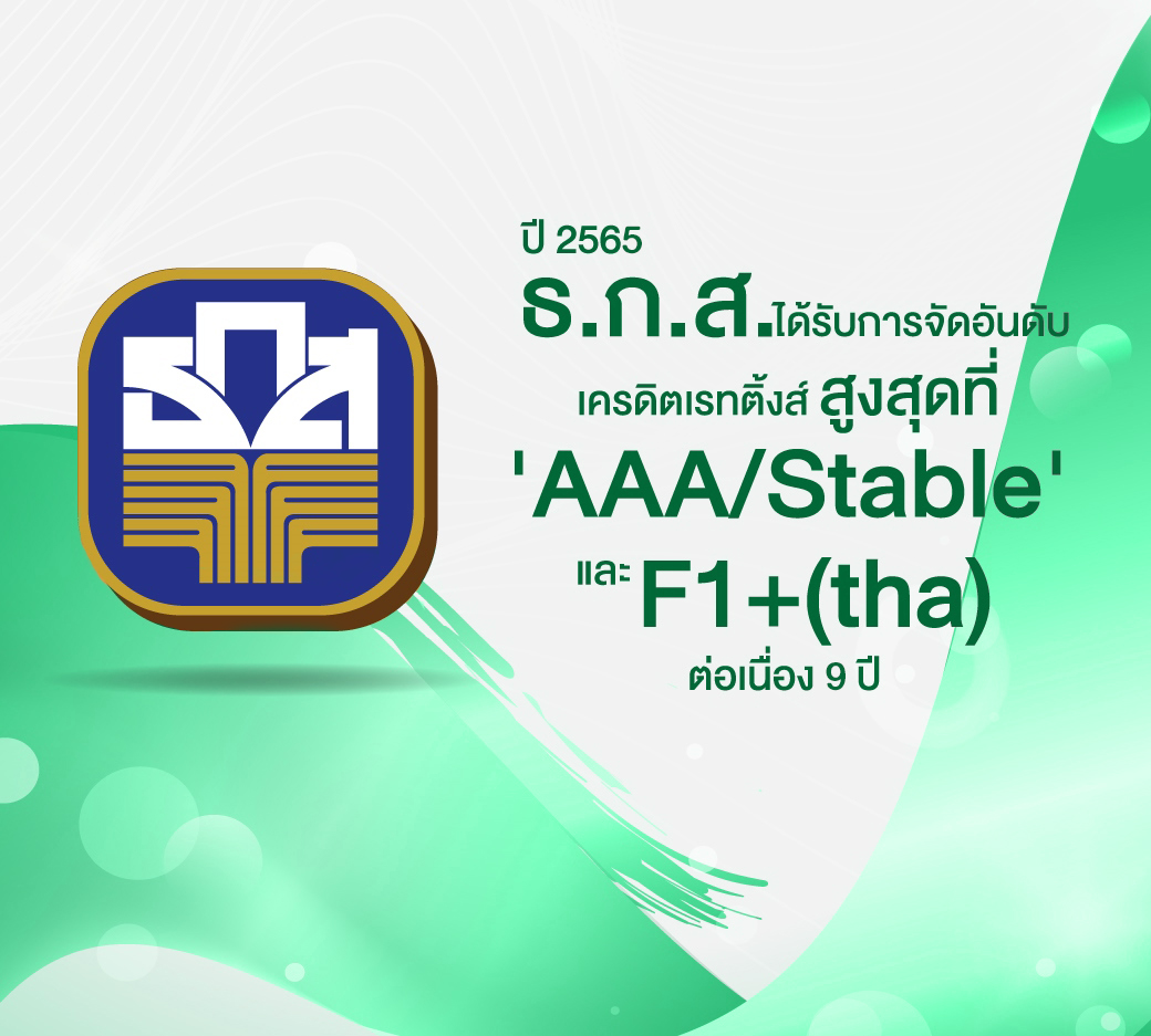 ธ.ก.ส. ได้รับการจัดอันดับเครดิตเรทติ้งส์ สูงสุดที่ AAA (tha) และ F1+ (tha) ต่อเนื่อง 9 ปี