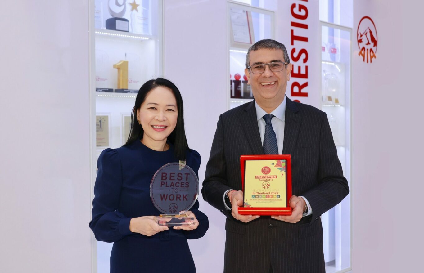 เอไอเอ ประเทศไทย นำโดย นายนิคฮิล แอดวานี ประธานเจ้าหน้าที่บริหาร และ นางศรัณยา เทียนถาวร ประธานเจ้าหน้าที่ฝ่ายทรัพยากรบุคคล รับรางวัล Best Place to Work หรือ บริษัทที่น่าทำงานด้วยมากที่สุดในเอเชียประจำปี 2565 จัดขึ้นโดยสถาบัน Best Places to Work ซึ่งทำการวิจัยด้านการบริหารงานบุคคลกับบริษัทชั้นนำต่าง ๆ ทั่วโลก โดยพิจารณาจากการบริหารจัดการภายในองค์กร การเปิดโอกาสให้พนักงานมีส่วนร่วม การดูแลเอาใจใส่ สร้างบรรยากาศที่เหมาะสมในการทำงาน ตลอดจนการส่งเสริมวัฒนธรรมการทำงานเป็นทีม ให้ความสำคัญกับการสร้างโอกาสที่เท่าเทียมกัน รวมทั้งส่งเสริมสภาพแวดล้อมที่ปลอดภัยเพื่อให้พนักงานสามารถสร้างสมดุลระหว่างความเป็นอยู่ที่ดีได้