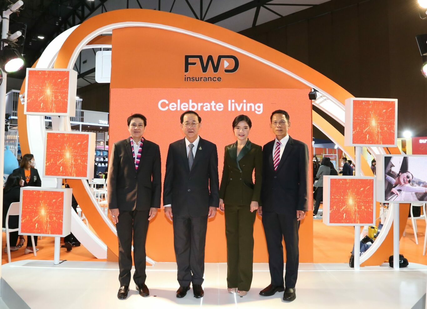นางสาวปวริศา ชุมวิกรานต์ (ที่ 2 จากขวา) ประธานเจ้าหน้าที่สายงานภาพลักษณ์และสื่อสารองค์กร บริษัท เอฟดับบลิวดี ประกันชีวิต จำกัด (มหาชน) (“FWD ประกันชีวิต”) ให้การต้อนรับนายอาคม เติมพิทยาไพสิฐ (ที่ 2 จากซ้าย) รัฐมนตรีว่าการกระทรวงการคลัง ร่วมด้วยนางสาววสุมดี วสีนนท์ (ที่ 1 จากซ้าย) รองเลขาธิการ ด้านตรวจสอบ และนายชัยยุทธ มังศรี (ที่ 1 จากขวา) รองเลขาธิการ ด้านกฎหมาย คดี และคุ้มครองสิทธิประโยชน์ สำนักงานคณะกรรมการกำกับและส่งเสริมการประกอบธุรกิจประกันภัย (คปภ.) ในโอกาสให้เกียรติร่วมเป็นประธานเปิดบูท FWD ประกันชีวิต ในงาน Thailand InsurTech Fair 2022 (TIF 2022) ภายใต้แนวคิด “Reshaping Insurance to the Multiverse of InsurTech for the Future” ซึ่งการจัดงานครั้งนี้เป็นแบบ Hybrid ที่มีทั้งการเปิดบูธนำเสนอผลิตภัณฑ์และบริการในงาน และผ่านช่องทางออนไลน์ ระหว่างวันที่ 7- 9 ตุลาคม ที่ผ่านมา ณ ศูนย์แสดงสินค้าและการประชุมอิมแพ็ค เมืองทองธานี