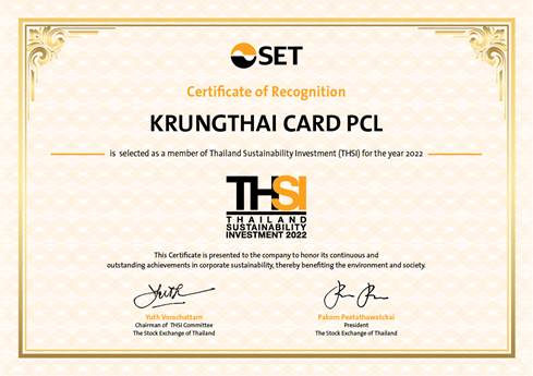 รายชื่อหุ้นยั่งยืน THSI คัดเลือกโดยผู้ทรงคุณวุฒิในภาคตลาดทุน โดยพิจารณากลั่นกรองจากแบบประเมินความยั่งยืน ซึ่งประกอบด้วยตัวชี้วัดทั่วไป และตัวชี้วัดตามลักษณะการประกอบธุรกิจตามกลุ่มอุตสาหกรรม โดยกลุ่มธุรกิจการเงินมีตัวชี้วัดที่ครอบคลุมถึงความปลอดภัยของข้อมูลและระบบสารสนเทศ การทำธุรกิจทางการเงินอย่างรับผิดชอบ ซึ่งสอดคล้องกับประเด็นสำคัญที่ผู้ลงทุนให้ความสนใจและเพิ่ม ขีดความสามารถในการแข่งขันในระยะยาวของบริษัท ทั้งนี้ บริษัทจะต้องผ่านเกณฑ์การประเมินด้านความยั่งยืนในมิติเศรษฐกิจ สิ่งแวดล้อมและสังคม ตามที่ตลาดหลักทรัพย์ฯ กำหนด