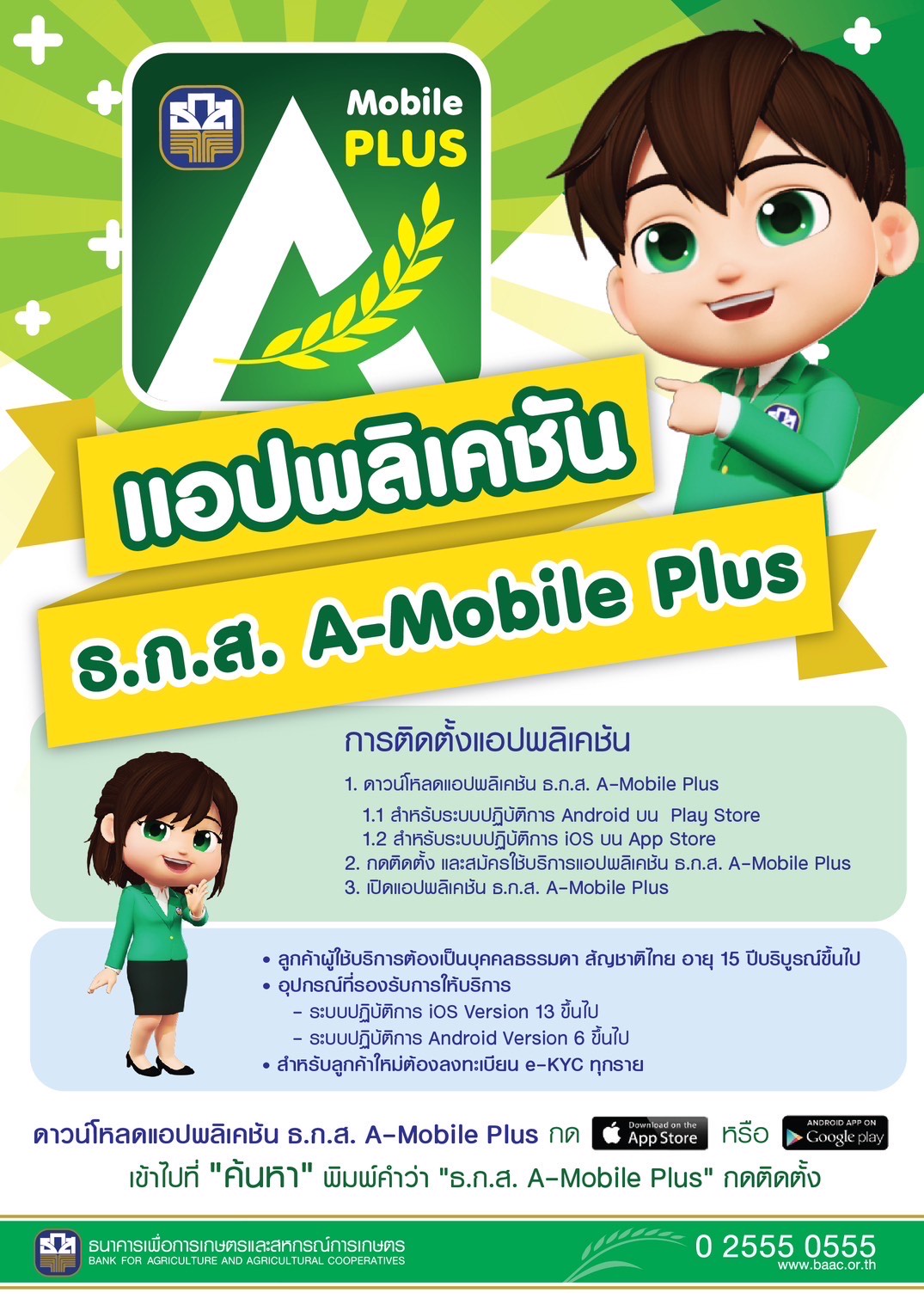นายธนารัตน์ กล่าวต่อไปว่า เพื่อรองรับจำนวนผู้สมัครใช้บริการและปริมาณการทำธุรกรรมที่เพิ่มขึ้นอย่างต่อเนื่อง ธ.ก.ส. จึงมีการปรับปรุงและยกระดับ Mobile Banking ในส่วนของแอปพลิเคชัน ธ.ก.ส. A-Mobile ไปสู่ ธ.ก.ส. A-Mobile Plus เพื่อรองรับทุกความต้องการของผู้ใช้งาน ไม่ว่าจะเป็นการลงทะเบียนและแก้ไขรหัสผ่านได้ง่าย ๆ ด้วยตนเอง การเปิดบัญชีเงินฝาก การตรวจสอบรายละเอียดการเดินบัญชี การขอสินเชื่อ การซื้อสลาก การตรวจสอบสลาก ธ.ก.ส. โดยเสริมประสิทธิภาพการ “ถอน โอน เติม จ่าย” ให้มีเสถียรภาพมากขึ้น การถอนเงินโดยไม่ใช้บัตรได้ทั้งตู้ ATM/CDM ธ.ก.ส. และตู้ ATM/CDM ต่างธนาคาร นอกจากนี้ ลูกค้าสามารถตั้งค่าการแสกนจ่ายด่วน (Quick Pay) โดยไม่ต้องใส่รหัส PIN สูงสุดไม่เกิน 5,000 บาท พร้อม QR code บน e-slip สำหรับการตรวจสอบการโอนเงินที่สะดวกและป้องกันการทุจริตจากกลุ่มมิจฉาชีพ การขอกู้เงินผ่านบริการ Digital Lending ซึ่งผู้ใช้งานยังสามารถสมัครหรือยกเลิก และยืนยันตัวตนผ่านบริการ NDID (National Digital ID) ได้ทุกที่ทุกเวลา โดยไม่ต้องไปดำเนินการที่สาขา ลูกค้าสามารถดาวน์โหลดแอปพลิเคชัน ธ.ก.ส. A-Mobile Plus ได้บนระบบปฏิบัติการ iOS ผ่าน Appstore และระบบปฏิบัติการ Android ผ่าน Playstore ได้ตั้งแต่บัดนี้เป็นต้นไป