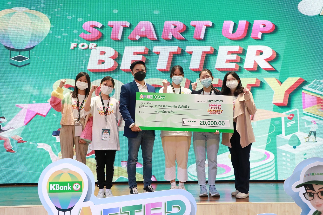 กิจกรรม AFTERKLASS Business Kamp จัดต่อเนื่องเป็นปีที่ 3 มีนักเรียนมัธยมปลายสมัครเข้าร่วมกิจกรรมกว่า 140 ทีม และคัดเหลือ 8 ทีมสุดท้ายที่ได้เข้าค่าย 3 วัน ซึ่งน้องๆ ได้เรียนรู้การสร้างไอเดียธุรกิจ นวัตกรรมเพื่อตอบโจทย์สังคมอย่างยั่งยืน พร้อมฝึกทักษะ Problem Finding โดยมีเมนเทอร์คอยให้คำแนะนำอย่างใกล้ชิด และเสริมด้วยเทคนิคการสร้าง UX/UI ให้โดนใจลูกค้า ผลการแข่งขัน ทีมชนะเลิศ ได้แก่ ทีม DKRG กับผลิตภัณฑ์แบรนด์ “หนอนติดล้อ” ผงโปรตีนที่สกัดมาจากหนอนนก 100% ซึ่งมีราคาถูกกว่าผงโปรตีนชนิดอื่นๆ ทำให้ผู้ที่ต้องการบริโภคโปรตีนสำหรับเสริมสร้างกล้ามเนื้อสามารถเข้าถึงได้ง่ายยิ่งขึ้น รองชนะเลิศอันดับที่ 1 ได้แก่ ทีม SINGLE LEAD แอปพลิเคชัน KnowHere แพลตฟอร์มที่จะพาเด็กมัธยมท่องโลกความรู้เรื่องไอที โดยมี Road Map เป็นไกด์เพื่อนำทาง มี Community คอยช่วยเหลือและมีกิจกรรมการแข่งขันให้ได้ลองทำงานจริง และรองชนะเลิศอันดับที่ 2 ได้แก่ ทีม BEING GIMMICK แอปพลิเคชัน EduFlex แอปพลิเคชันที่จะช่วยเพิ่มโอกาสให้ผู้สอนได้มีพื้นที่ในการสอน พร้อมทั้งสร้างรายได้และยังช่วยให้ผู้เรียนได้เรียนสิ่งที่สนใจในราคาถูก และยังมีรางวัลอื่นๆ ประกอบด้วย Teamwork for Better Society, Inspire for Better Society และ Popular Vote ทั้งโครงการมูลค่ารวมกว่า 200,000 บาท